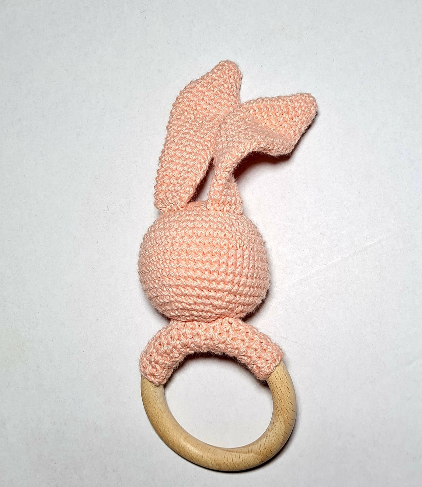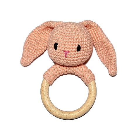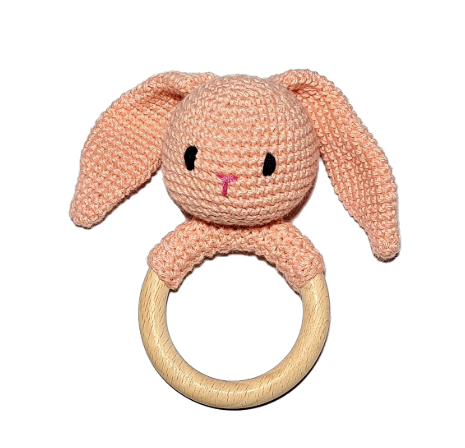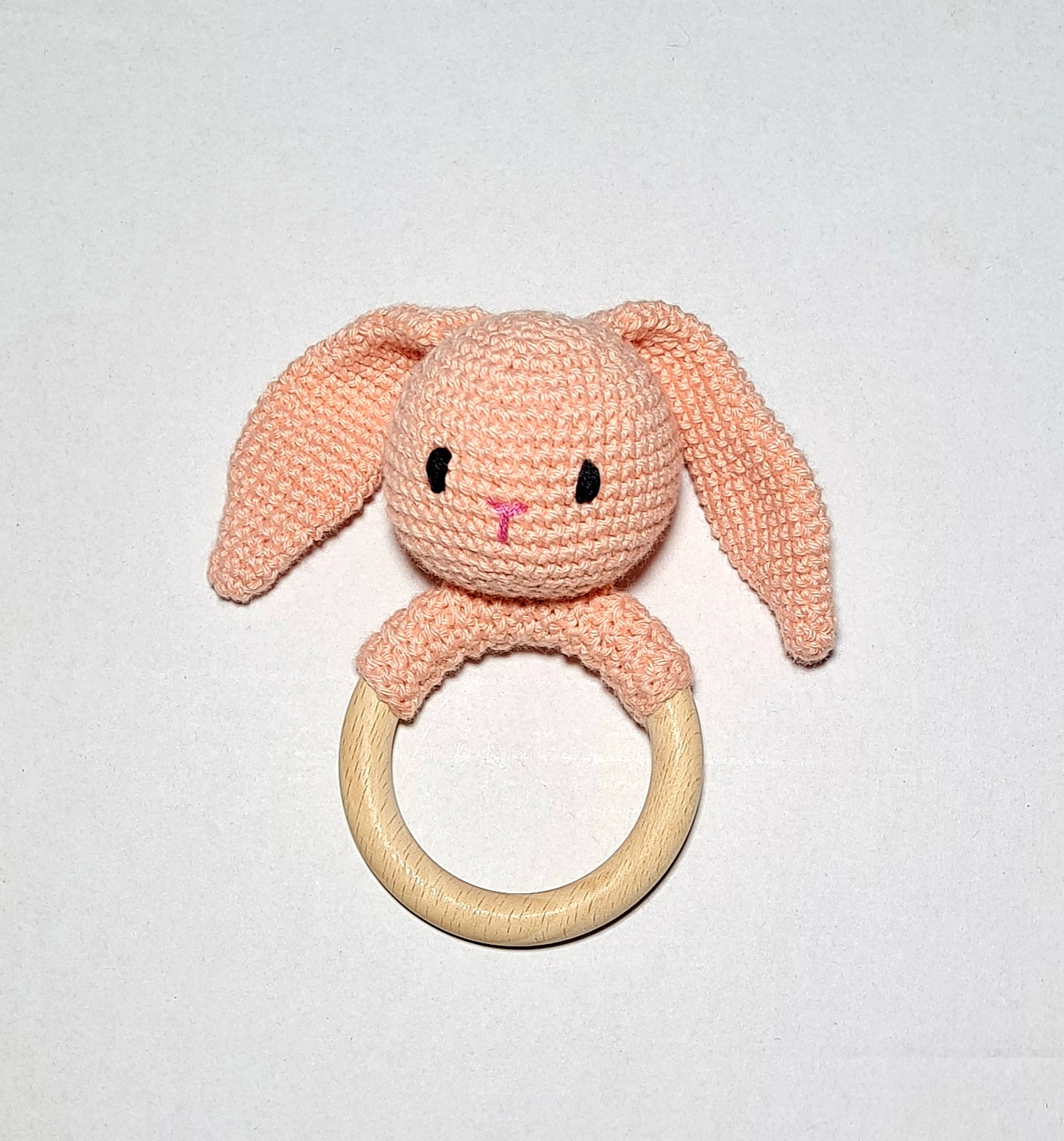 Jucarie crosetata manual pentru dentitie - Iepure - somon Iepurasul este prietenul bebelusilor, inca din primele luni de viata.