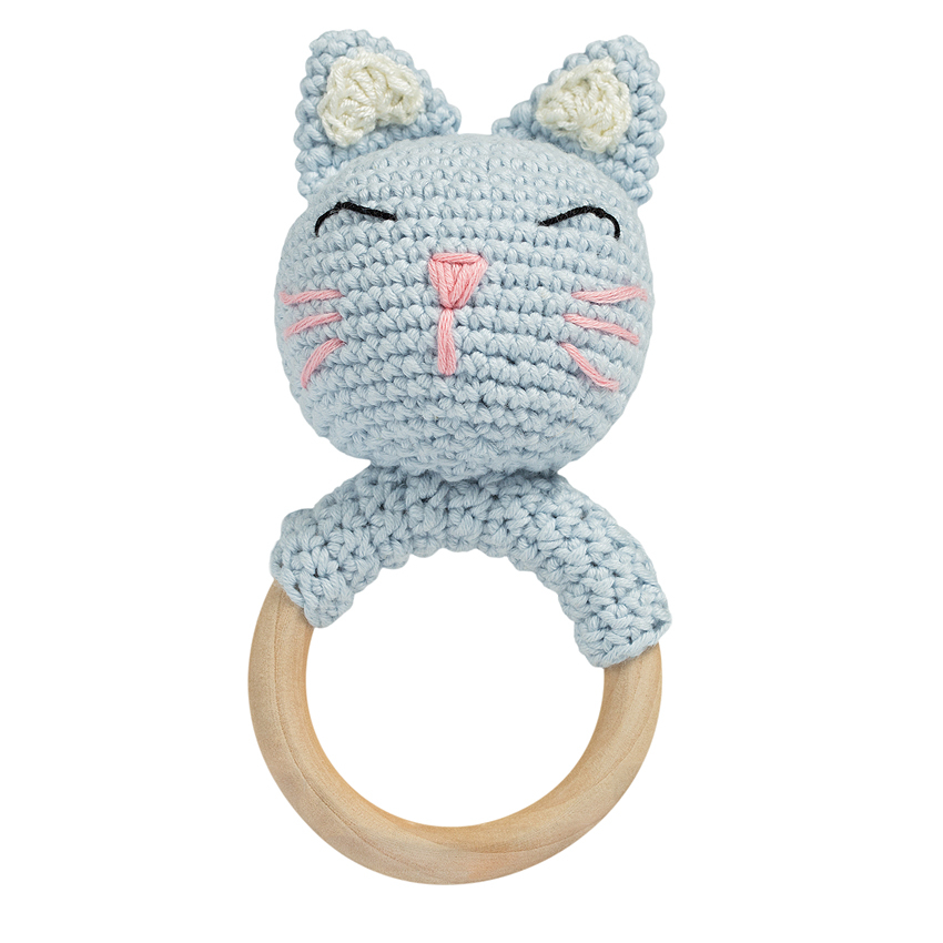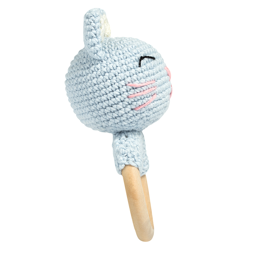 Jucarie crosetata manual pentru dentitie - Pisica - albastruPisicuta este prietena bebelusilor, inca din primele luni de viata.