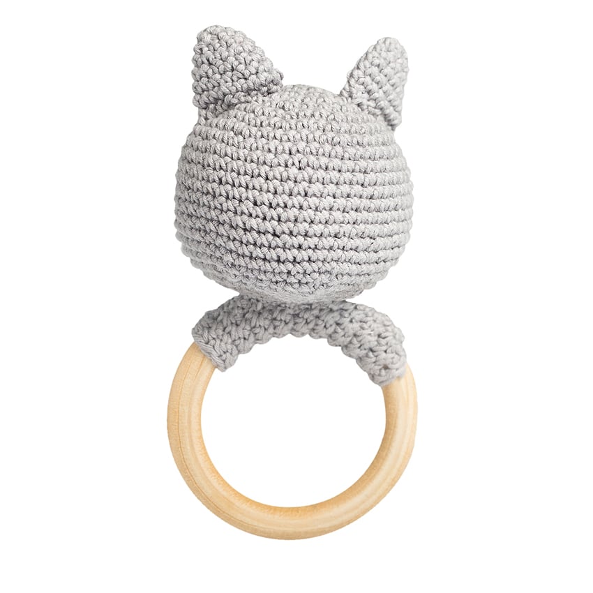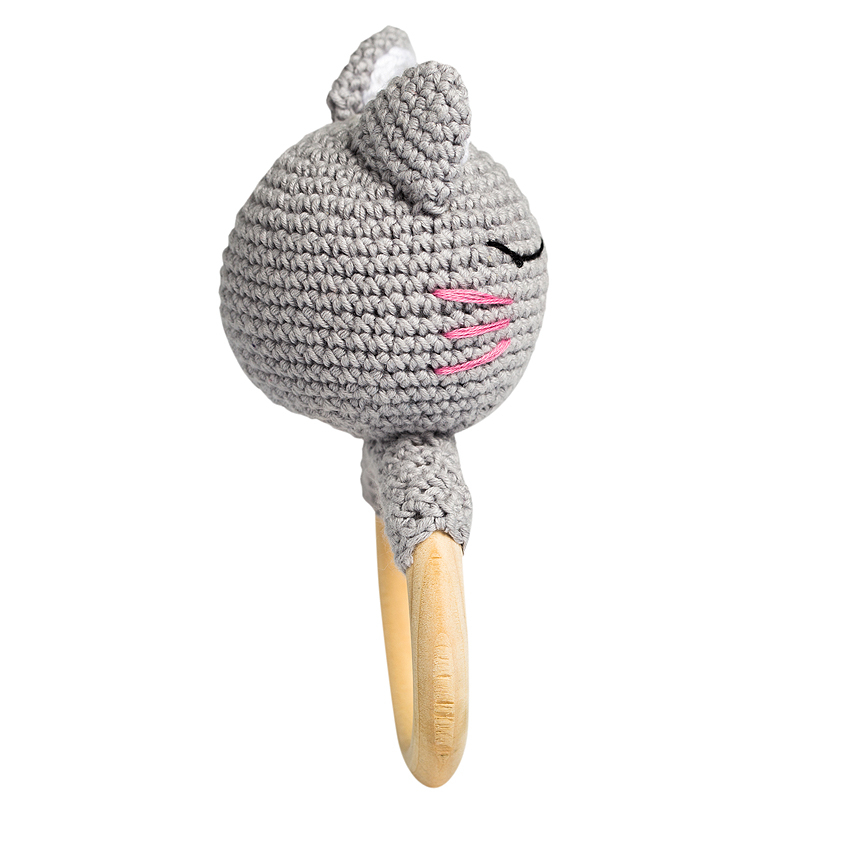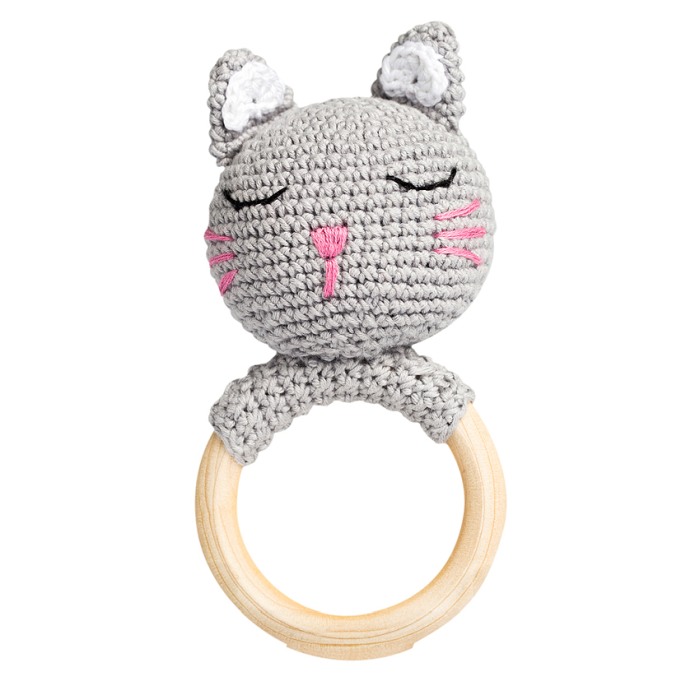 Jucarie crosetata manual pentru dentitie - Pisica - griPisicuta este prietena bebelusilor, inca din primele luni de viata.