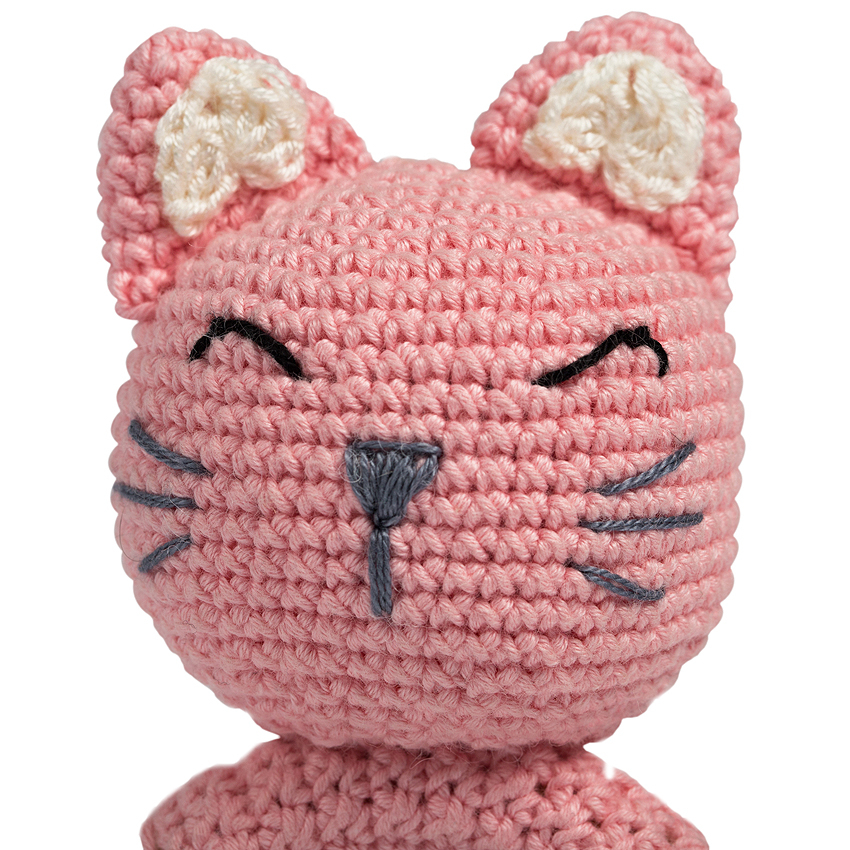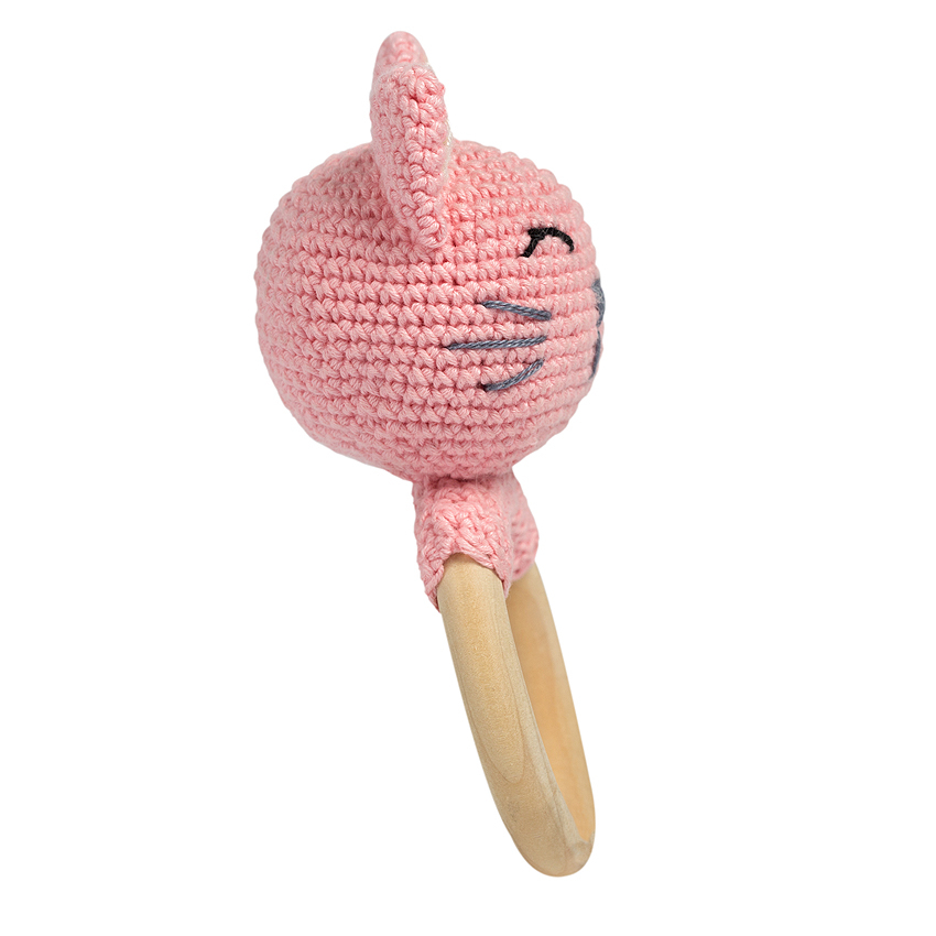 Jucarie crosetata manual pentru dentitie - Pisica - roz Pisicuta este prietena bebelusilor, inca din primele luni de viata.