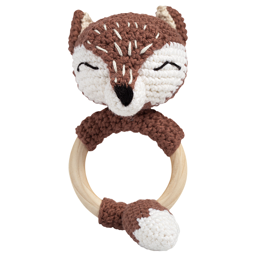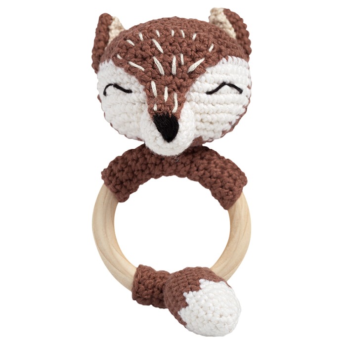 Fatuca prietenoasa a vulpitei, ii va bine dispune pe cei mici, iar inelului din lemn, le va reduce durerea cauzata de aparitia primilor dintisori.