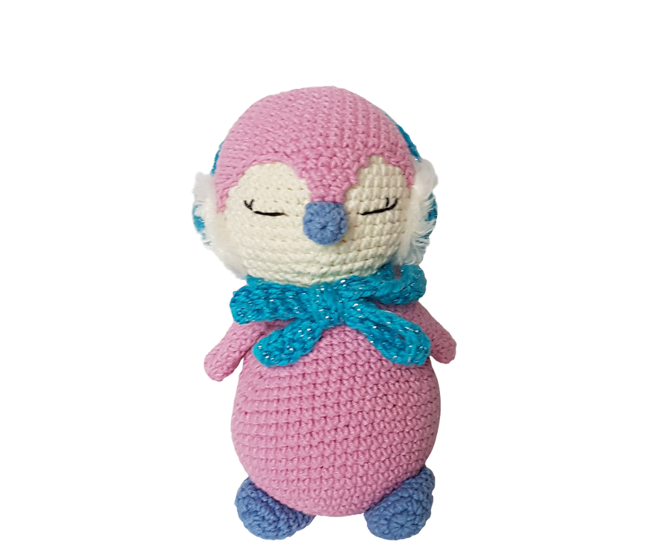Jucarie crosetata manual - Pinguin cu fular turcoazPinguinul cu fular si casti este crosetat manual din bumbac si PAC.