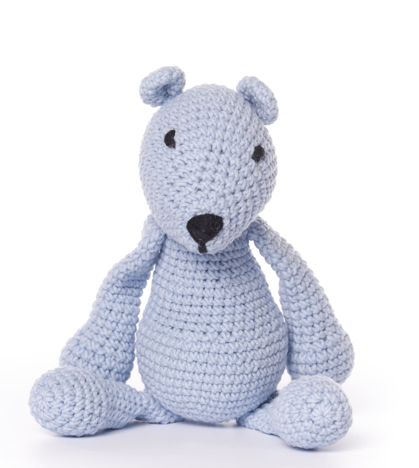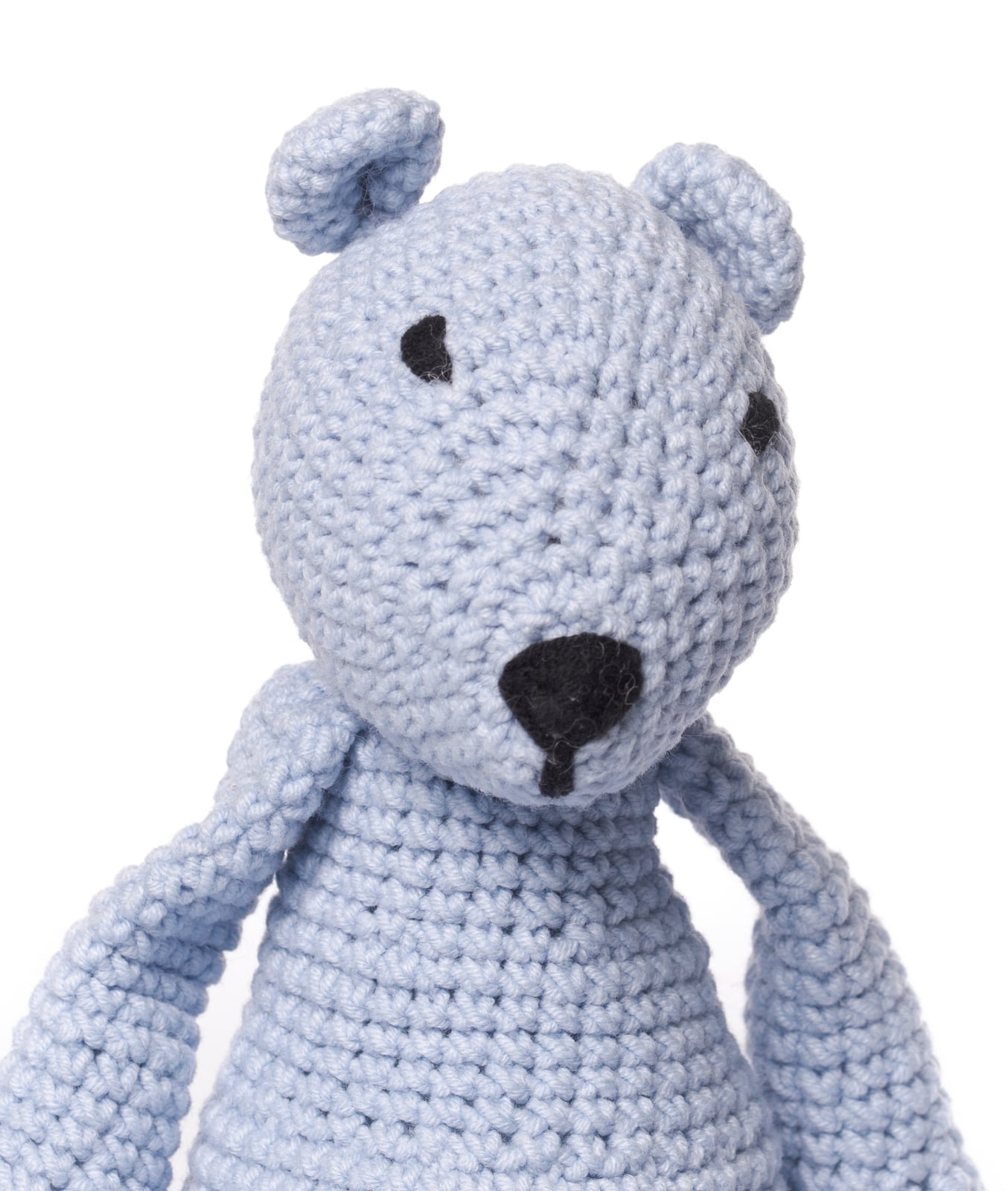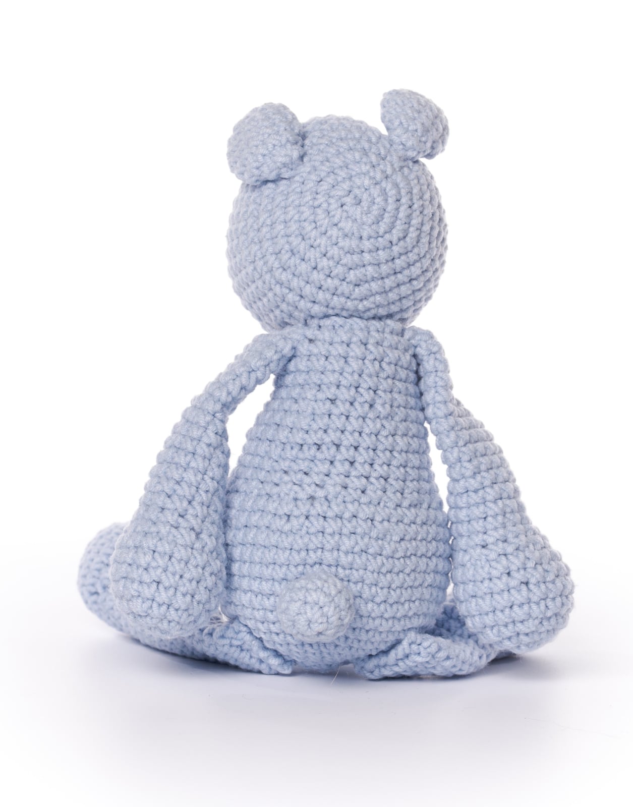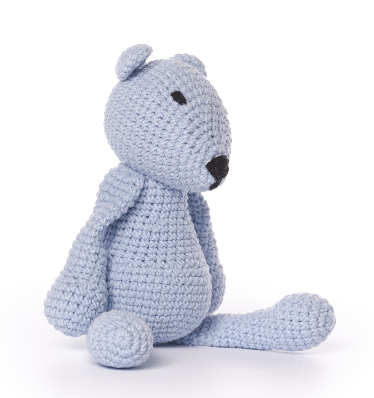 Jucarie crosetata manual - Ursulet Kay - albastru Cel mai jucaus dintre ursuleti, Kay se pierde printre nameti. Anotimpul lui preferat este iarna, pentru ca se poate distra in voie cu fulgii de nea, care pica necontenit din cer. Este un prieten loial si iti da cele mai bune sfaturi, asa cum doar la Polul Nord se face.Ursuletul Kay este o jucarie crosetata manual si poate fi un cadou perfect, atat pentru cei mici cat si pentru cei mari.Specificatii:Material: 51% bumbac / 49% PAC