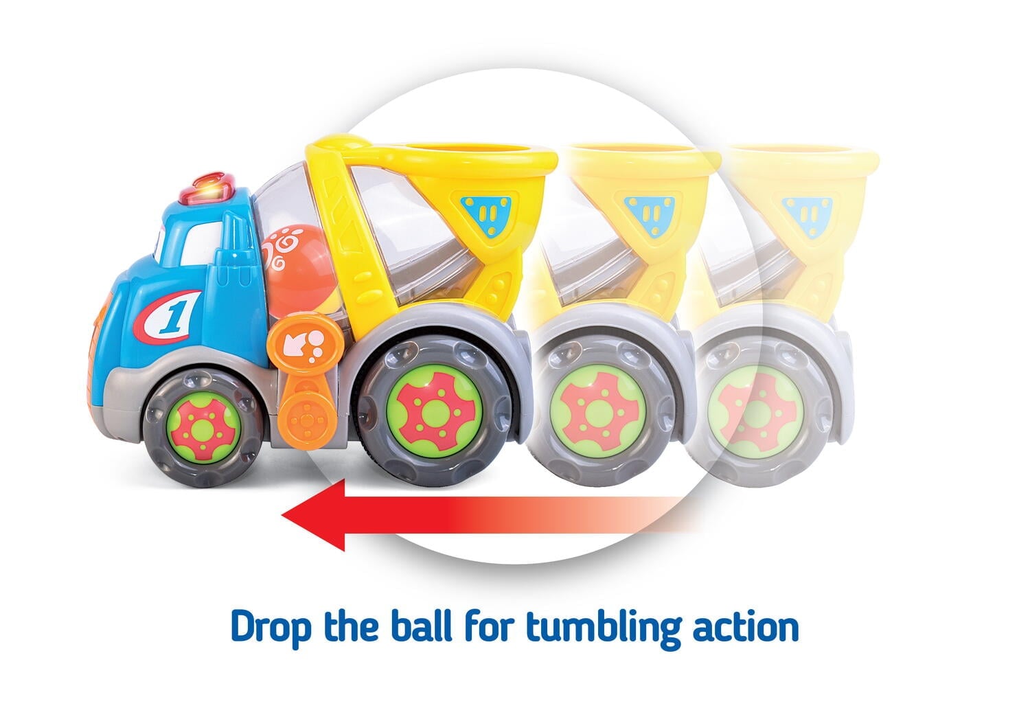 introdu bilele in trompa si urmareste-le cum se amesteca si se rostogolesc in interior, oferind o experienta captivanta vizual si tactil