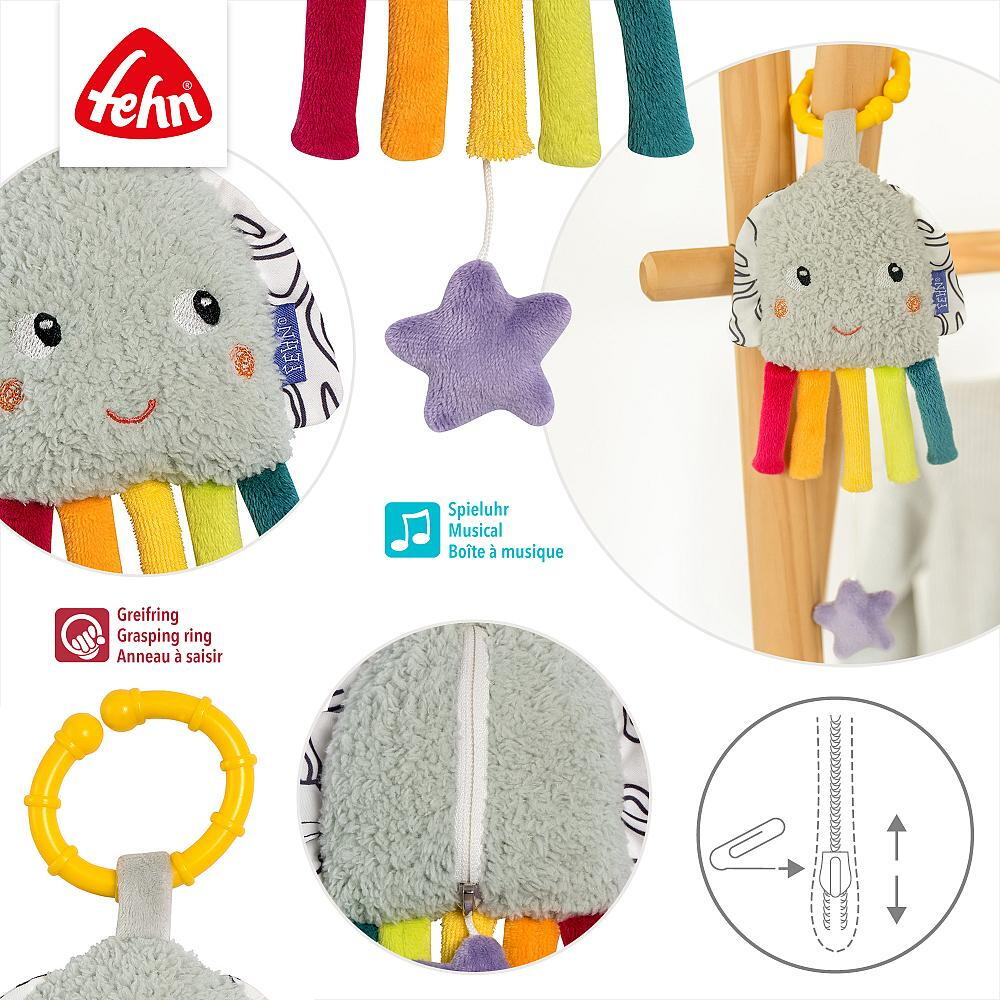 Companion practic: Echipata cu un inel de prindere in forma de C, jucaria se poate atasa rapid si usor la: patutul bebelusului, scaun auto, scoica, leagan sau baldachin