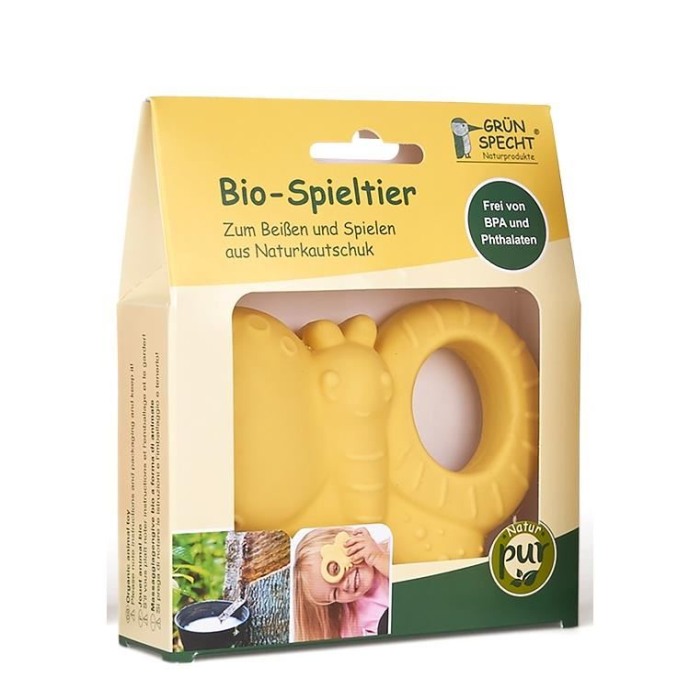 Bebelusii descopera lumea cu gura, mainile si ochii. Forma naturala a jucariilor noastre starneste curiozitatea celor mici si invita mainile bebelusului sa exploreze. In acest fel, pot lua contact in mod jucaus si avea primele experiente cu diferite forme și structuri, iar simtul tactil si prinderea sunt antrenate pe parcurs. Jucaria pentru bebelusi in forma de fluturas, din cauciuc natural organic, este destinata jocului si rosului. Partea externa din cauciuc organic le este de ajutor bebelusilor pentru a sustine procesul de dentitie. Datorita suprafetei sale structurate si a structurii moi, maseaza usor gingiile bebelusului in timp ce o mesteca.Specificatiile produsului- Jucarie din cauciuc natural organic, sigura pentru a fi roasa- Suprafata structurata pentru masajul gingiilor- Sustine dentitia bebelusilor in procesul natural de crestere.- Fara BPA si ftalati- Material: cauciuc natural organic - Forma de fluturas- Asamblat in ateliere pentru persoane cu dizabilitati