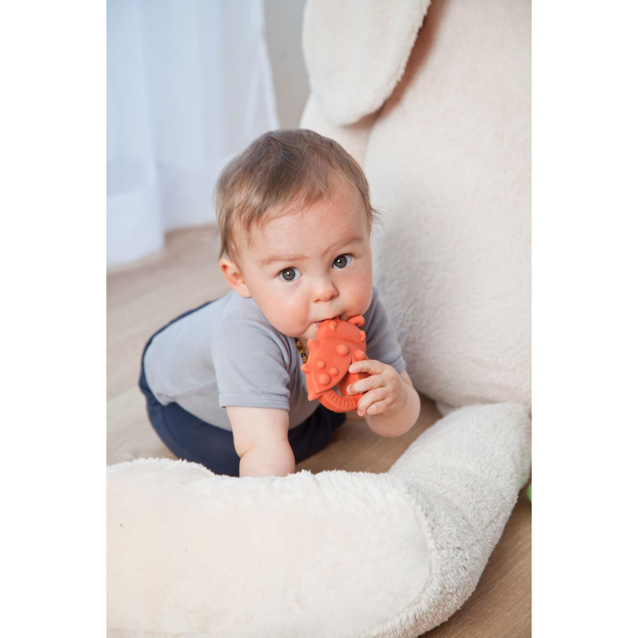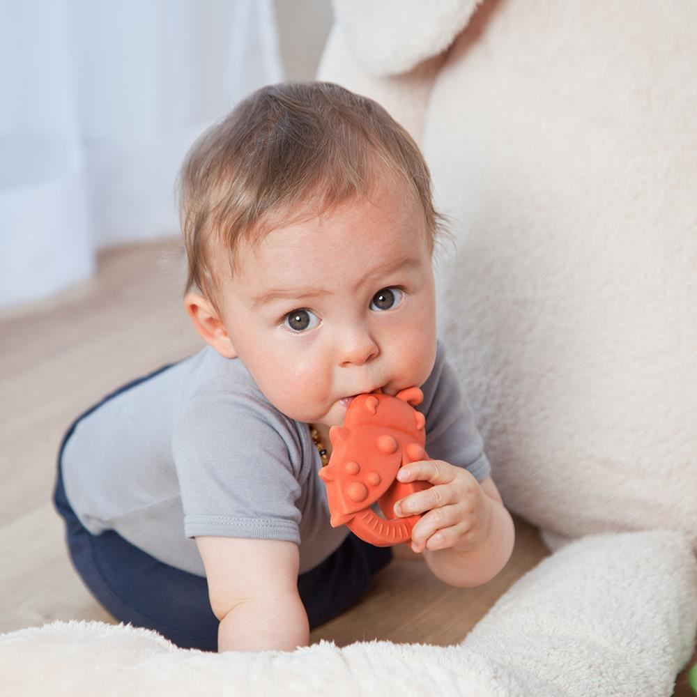 Bebelusii descopera lumea cu gura, mainile si ochii. Forma naturala a jucariilor noastre starneste curiozitatea celor mici si invita mainile bebelusului sa exploreze. In acest fel, pot lua contact in mod jucaus si avea primele experiente cu diferite forme și structuri, iar simtul tactil si prinderea sunt antrenate pe parcurs.Jucaria pentru bebelusi in forma de gargarita, din cauciuc natural organic, este destinata jocului si rosului. Partea externa din cauciuc organic le este de ajutor bebelusilor pentru a sustine procesul de dentitie. Datorita suprafetei sale structurate si a structurii moi, maseaza usor gingiile bebelusului in timp ce o mesteca.Specificatiile produsului- Jucarie din cauciuc natural organic, sigura pentru a fi roasa- Suprafata structurata pentru masajul gingiilor- Sustine dentitia bebelusilor in procesul natural de crestere.- Fara BPA si ftalati- Material: cauciuc natural organic - Forma de gargarita- Asamblat in ateliere pentru persoane cu dizabilitati