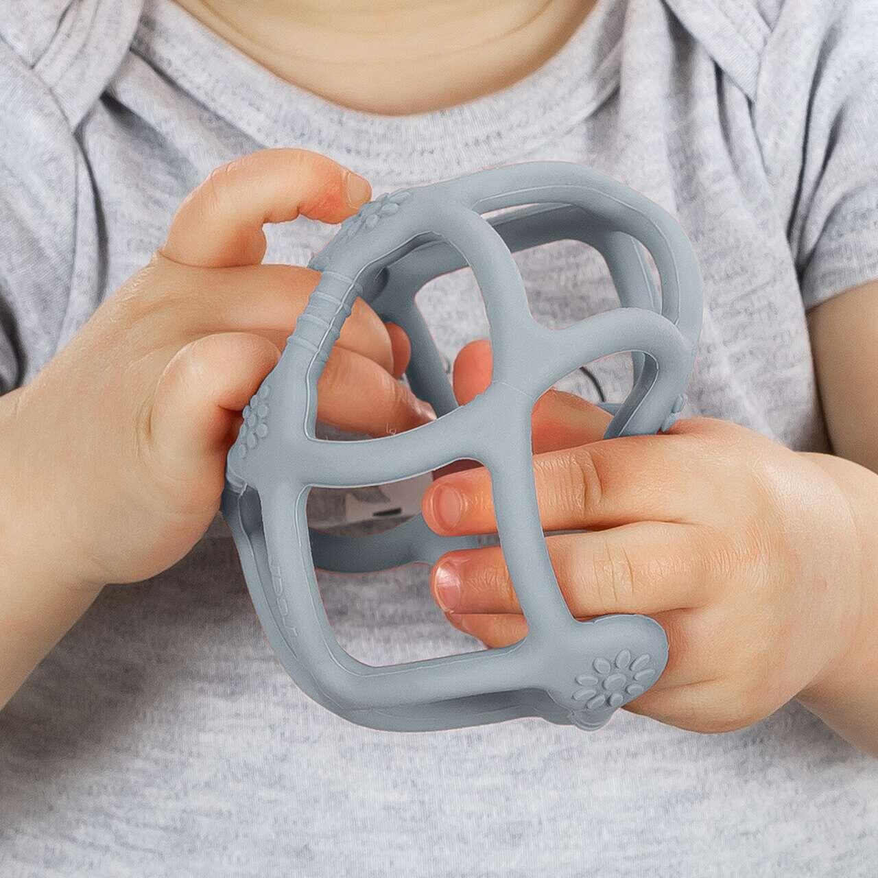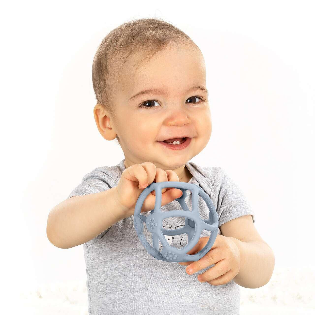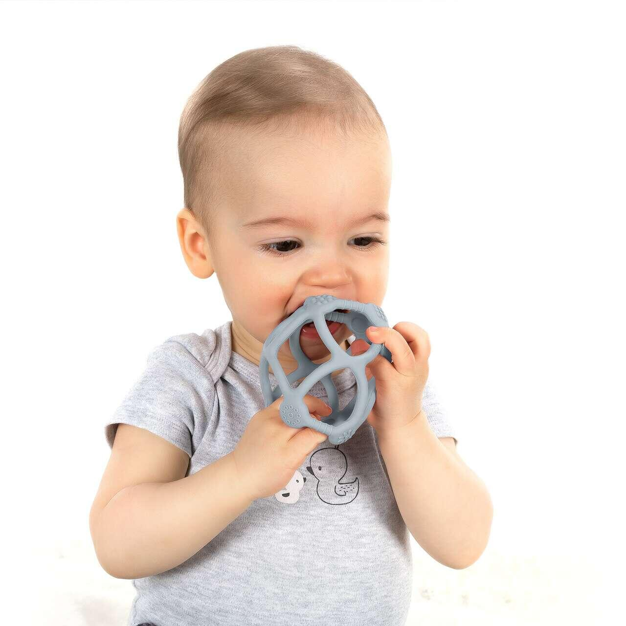 Cand cresc primii dinti, nu este important doar sa atenuati durerea, ci si sa distrageti bebelusul de la aceasta. Prin strangerea si mestecarea sau roaderea ei, mingea Bite&Play poate ajuta, deoarece le ofera bebelusilor un calmant pentru gingiile dureroase, in timp ce ii invita sa se joace si sa descopere forme, texturi, culori, antrenand astfel reflexele copilului.Jucaria pentru dentitie Bite&Play, pe langa a fi un ajutor calmant pentru dentitie datorita diverselor texturi care ofera o senzatie de ameliorare a durerii dintilor, dezvolta abilitatile motorii fine si coordonarea intre vedere si miscarea mainilor. Bite&Play este usor de prins si de tinut in mana chiar si pentru cei mai mici bebelusi, datorita numeroaselor orificii.Produsul este extra usor si flexibil, rezistent la uzura - poate fi presat, indoit, aruncat, rostogolit etc. Fabricata dintr-un silicon de inalta calitate, fara BPA si ftalati, se poate igieniza si curata prin fierbere, fiind posibila si dezinfectarea in sterilizatorul cu abur.Accesoriile pentru dentitie sunt un real ajutor atat pentru copil, cat si pentru parintii care nu stiu cum sa ii aline durerile. Specificatiile produsuluiJucarie pentru dentitie ce ajuta la calmarea durerile de dintiStimuleaza jocul si simtul atingerii Dezvolta abilitatile motorii fine si coordonarea intre vedere si miscarea mainilorMaterial: silicon de inalta calitate, fara BPA si fralatiSe poate igieniza prin fierbere sau in sterilizatorul cu aburiDimensiuni: diametru aprox. 9 cm, cu 12 orificiiPoate fi folosita la bebelusii cu varsta de la 0 luniCuloare: albastru