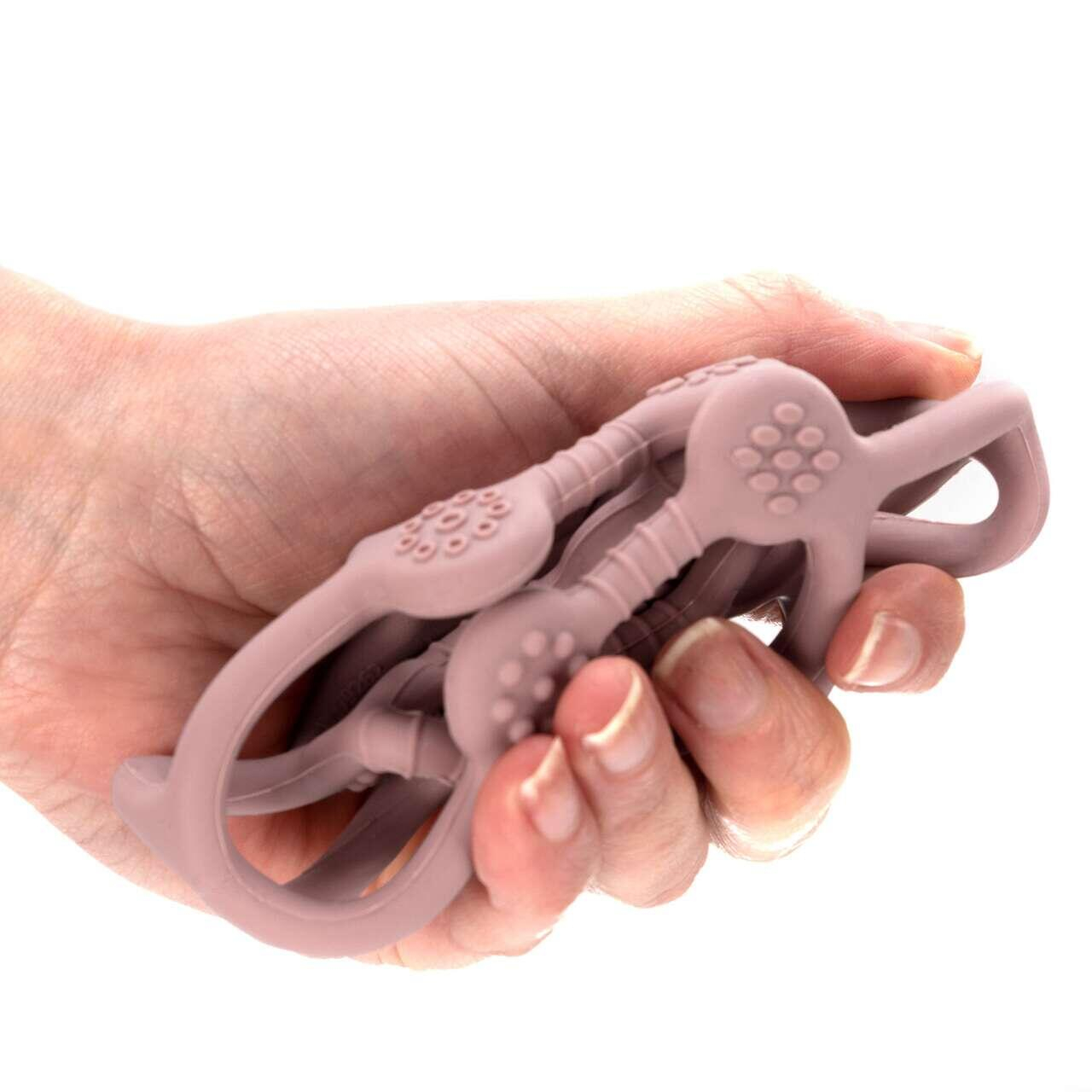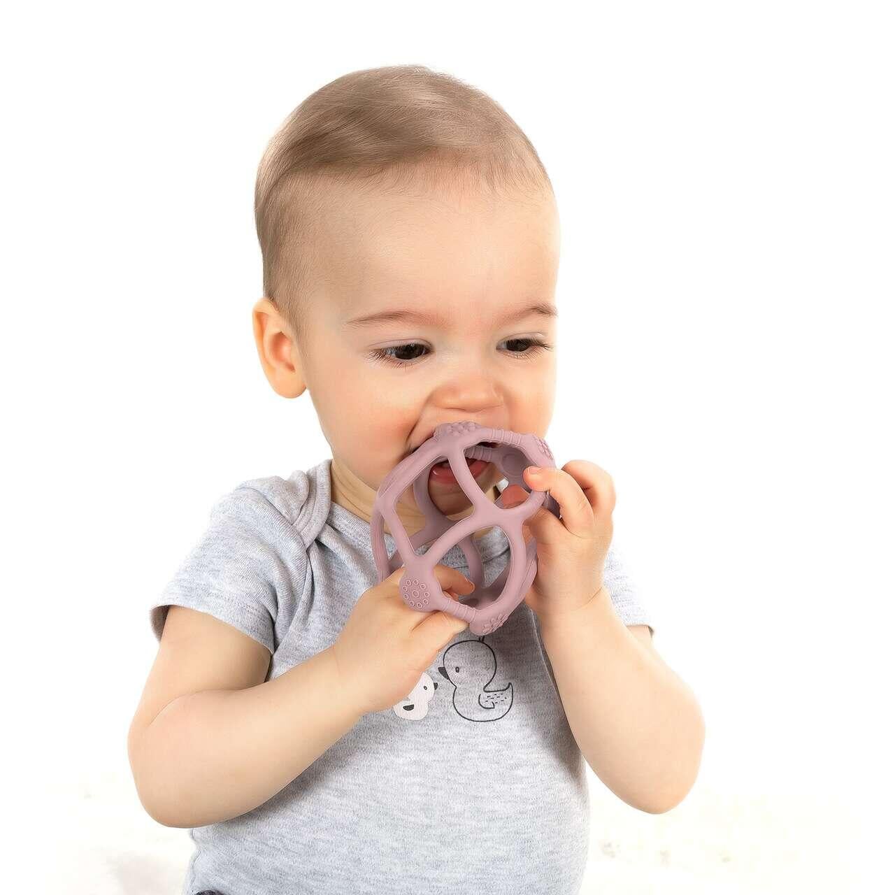 Cand cresc primii dinti, nu este important doar sa atenuati durerea, ci si sa distrageti bebelusul de la aceasta. Prin strangerea si mestecarea sau roaderea ei, mingea Bite&Play poate ajuta, deoarece le ofera bebelusilor un calmant pentru gingiile dureroase, in timp ce ii invita sa se joace si sa descopere forme, texturi, culori, antrenand astfel reflexele copilului.Jucaria pentru dentitie Bite&Play, pe langa a fi un ajutor calmant pentru dentitie datorita diverselor texturi care ofera o senzatie de ameliorare a durerii dintilor, dezvolta abilitatile motorii fine si coordonarea intre vedere si miscarea mainilor. Bite&Play este usor de prins si de tinut in mana chiar si pentru cei mai mici bebelusi, datorita numeroaselor orificii.Produsul este extra usor si flexibil, rezistent la uzura - poate fi presat, indoit, aruncat, rostogolit etc. Fabricata dintr-un silicon de inalta calitate, fara BPA si ftalati, se poate igieniza si curata prin fierbere, fiind posibila si dezinfectarea in sterilizatorul cu abur.Accesoriile pentru dentitie sunt un real ajutor atat pentru copil, cat si pentru parintii care nu stiu cum sa ii aline durerile. Specificatiile produsuluiJucarie pentru dentitie ce ajuta la calmarea durerile de dintiStimuleaza jocul si simtul atingerii Dezvolta abilitatile motorii fine si coordonarea intre vedere si miscarea mainilorMaterial: silicon de inalta calitate, fara BPA si fralatiSe poate igieniza prin fierbere sau in sterilizatorul cu aburiDimensiuni: diametru aprox. 9 cm, cu 12 orificiiPoate fi folosita la bebelusii cu varsta de la 0 luniCuloare: roz