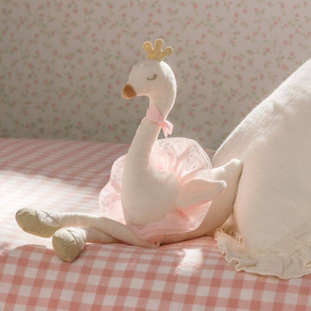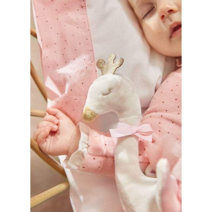 Jucarie Regina Lebada - MayoralLebada de plus pentru bebe dintr-o textura moale si care va fi compania perfecta pentru momentele de odihna si de joaca. Lebada are coroana aurie, fundita si futita tul.Culoare: roz/alb/aurieDimensiune: Material:100% Poliester