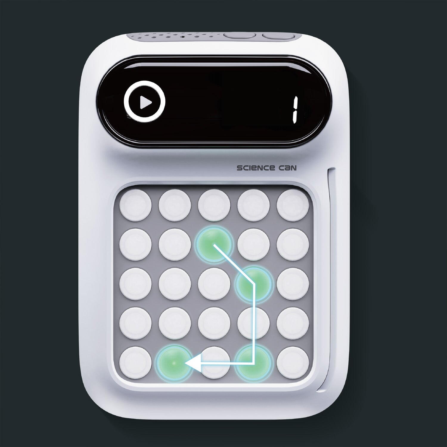 - Modul Memorie secventiala – Joc interactiv in care butoanele se aprind intr-o secventa aleatorie, iar copilul trebuie sa o memoreze si sa o repete corect. Contribuie la dezvoltarea memoriei si a gandirii cognitive.