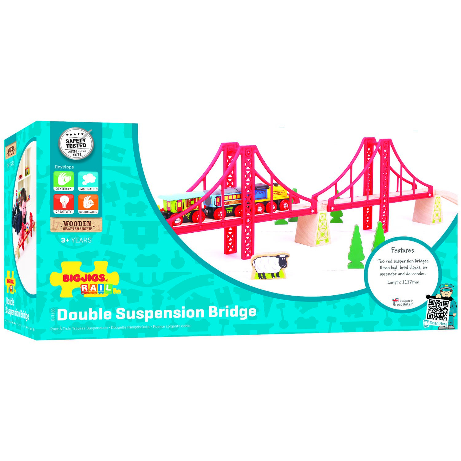 Pod dublu suspendatUnul dintre cele mai mari poduri din gama de accesorii Big Jigs, este accesoriul ideal ce completeaza pentru toate seturile cu trenulet. Cu ajutorul lui, trenuletele vor putea sa circule cu usurinta si la inaltime.