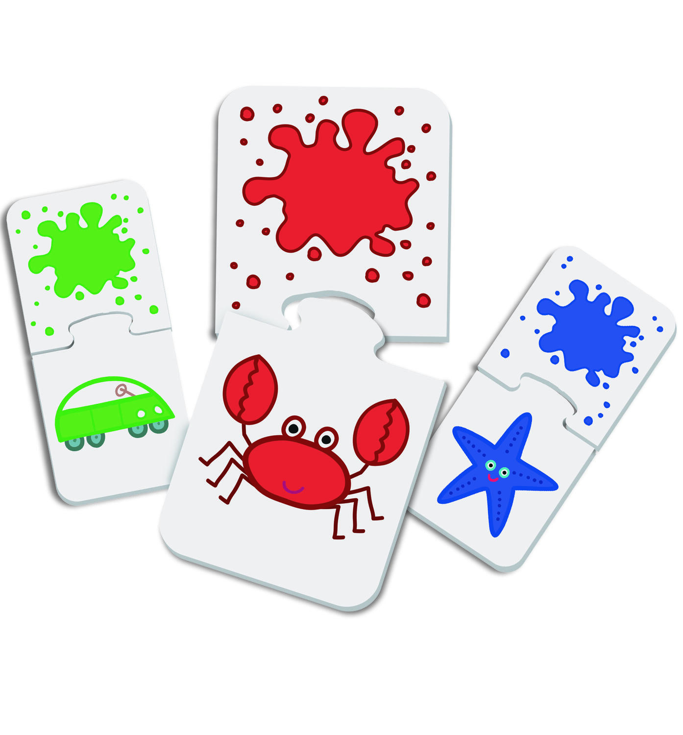 setul contine cartonase imprimate cu diferite culori si imagini viu colorate pentru o invatare rapida si eficienta prin imbinarea corecta a cartonaselor