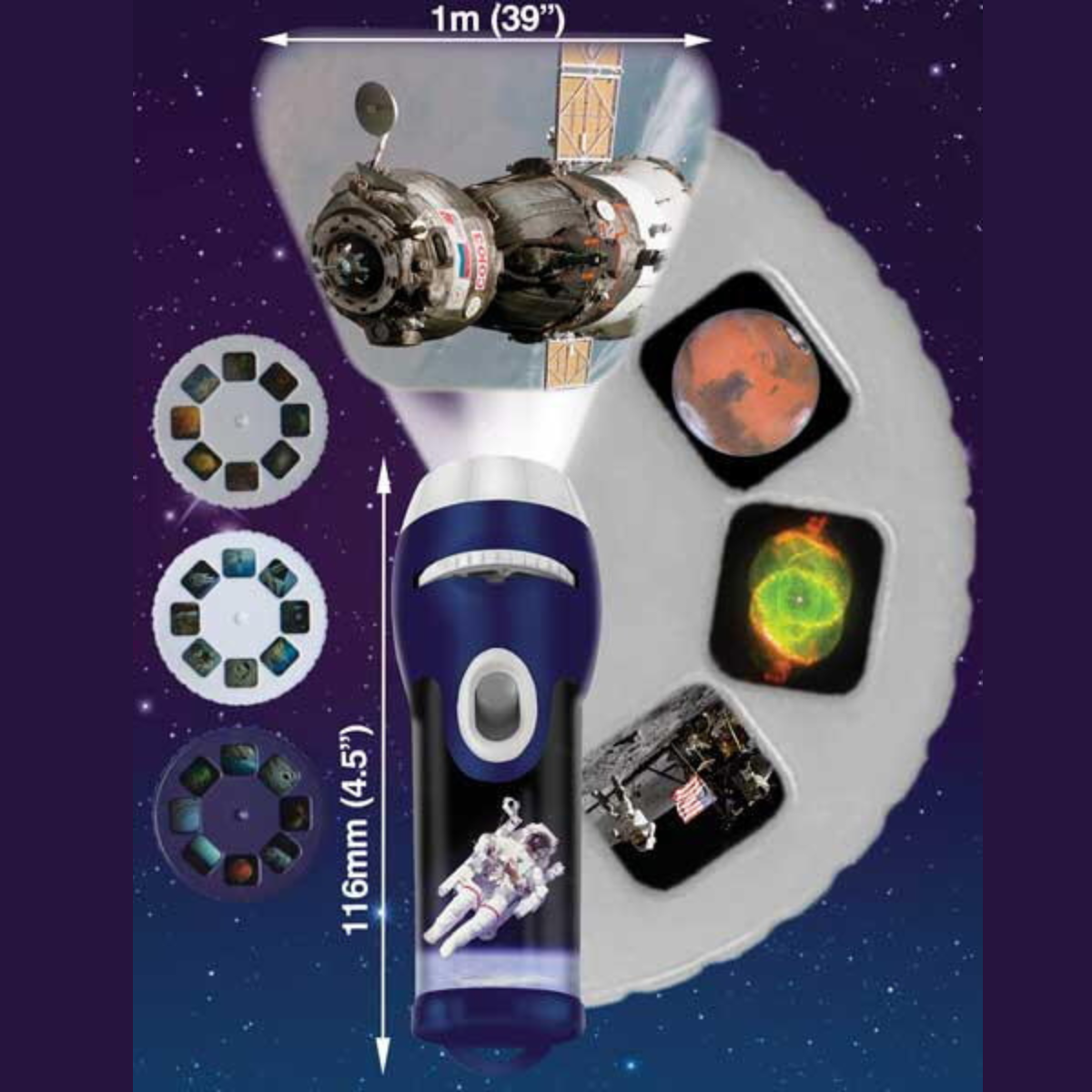 cu ajutorul a trei discuri, fiecare avand cate 8 imagini, proiectorul include un total de 24 de fotografii viu colorate, prezentand o varietate de imagini NASA si telescopul Hubble