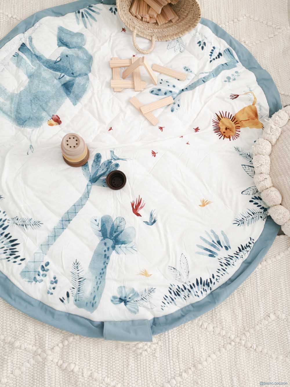 Sac depozitare jucarii Moulin Roty Baobab - Play&go Am descoperit sacul pentru jucarii Play&Go. Aici aveti sacul de jucarii/geanta /covorasul-salteluta de joaca Moulin Roty Baobab. O achizitie isteata pentru mami ce-i va salva timpul! Covorasul vine cu o bareta ce se poate agata usor de margini pentru a transforma rapid in sac aceasta salteluta!Salteluta este captusita si cusuta in romburi pentru a pastra structura iar bebe sa se poata juca in voie pe covorasul moale. Aventura incepe in jungla iar cel mic poate cunoaste primele notiuni despre animale si plante.Joaca s-a terminat? Strange tot printr-o singura miscare si agata geanta de marginea caruciorului. Acum hai la drum! Sacul este o solutie simpla si eficienta pentru depozitarea jucariilor, dar si un spatiu de joaca sau un mod de a-ti invata copilul sa stranga usor toate lucrurile cand a terminat sa se joace.