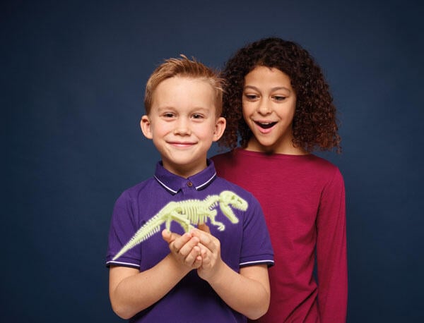 copiii pot realiza un schelet de dinozaur 3D cu ajutorul accesoriilor incluse in set