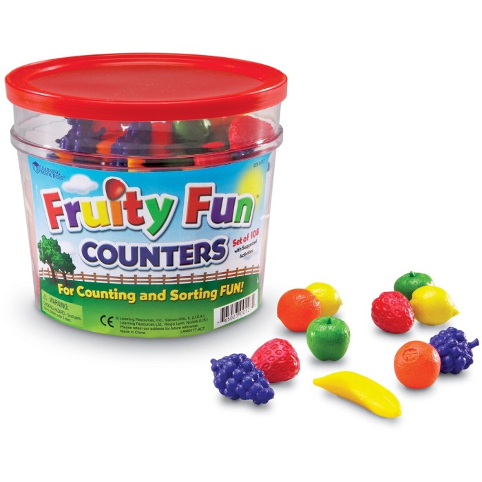 setul este ideal pentru activitati de sortat, numarat, recunoastere a diferitelor fructe si jocuri de rol pline de imaginatie