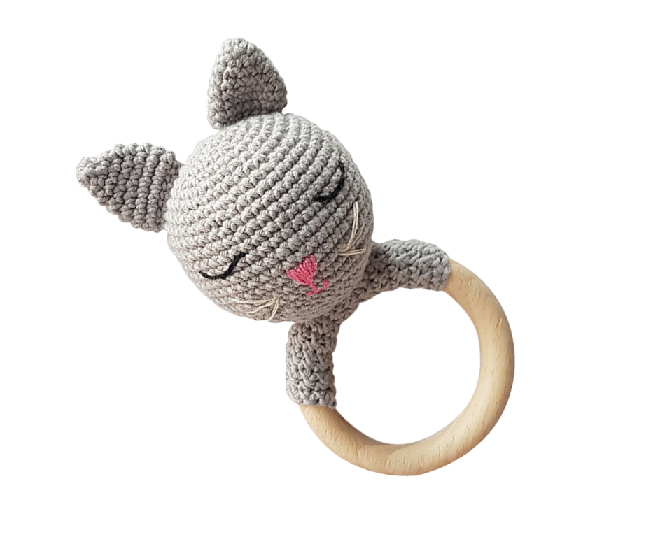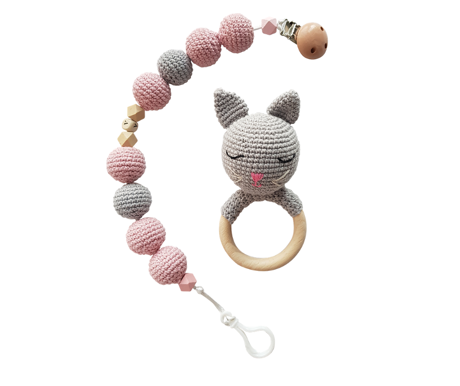Set jucarii crosetate manual pentru dentitie si suzeta - Pisica - gri Pisicuta este prietena bebelusilor, inca din primele luni de viata.