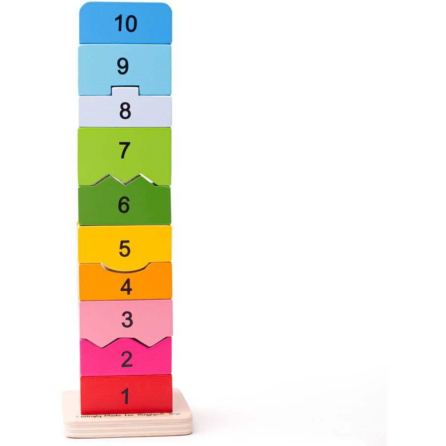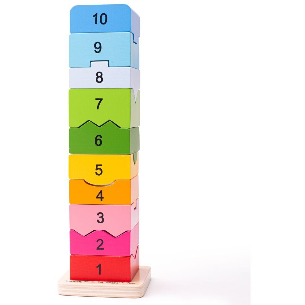 Construieste robustul turnulet din lemn si descopera numerele inscriptionate pe piese.In timp ce copiii potrivesc piesele pentru a construi turnuletul din lemn, ei isi vor dezvolta dexteritatea si indemanarea, dar vor avea si ocazia de a invata sa recunoasca numerele.Setul cuprinde: - 11 piese