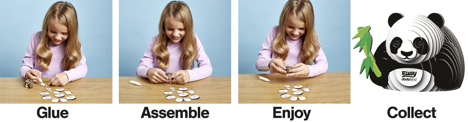 carduri care contin 29 de piese pentru construirea ursuletului panda