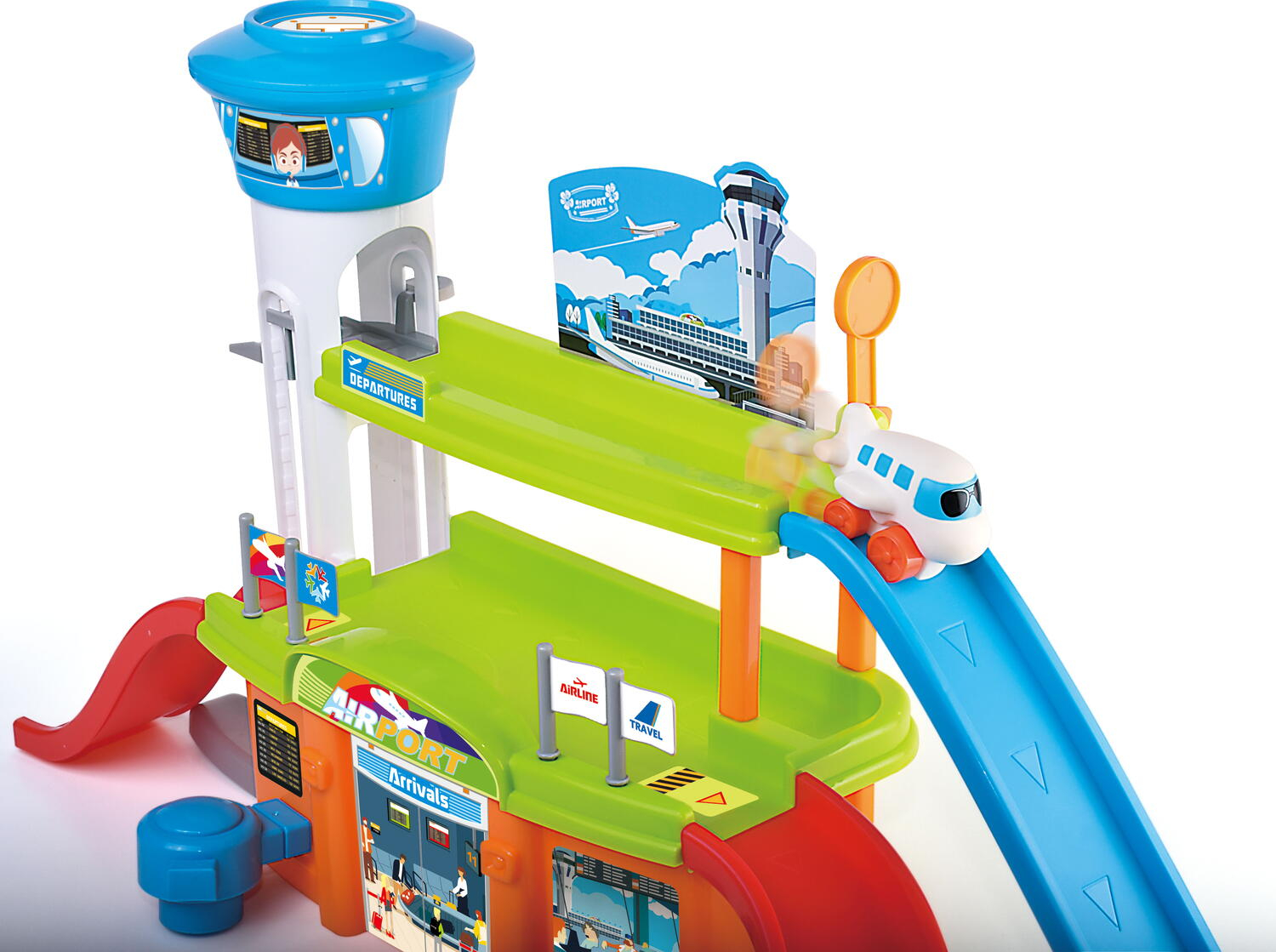 Pregateste-te de decolare! „Primul Meu Aeroport” este un set de joaca interactiv si colorat, perfect pentru micii pasionati de avioane si aventuri aeriene