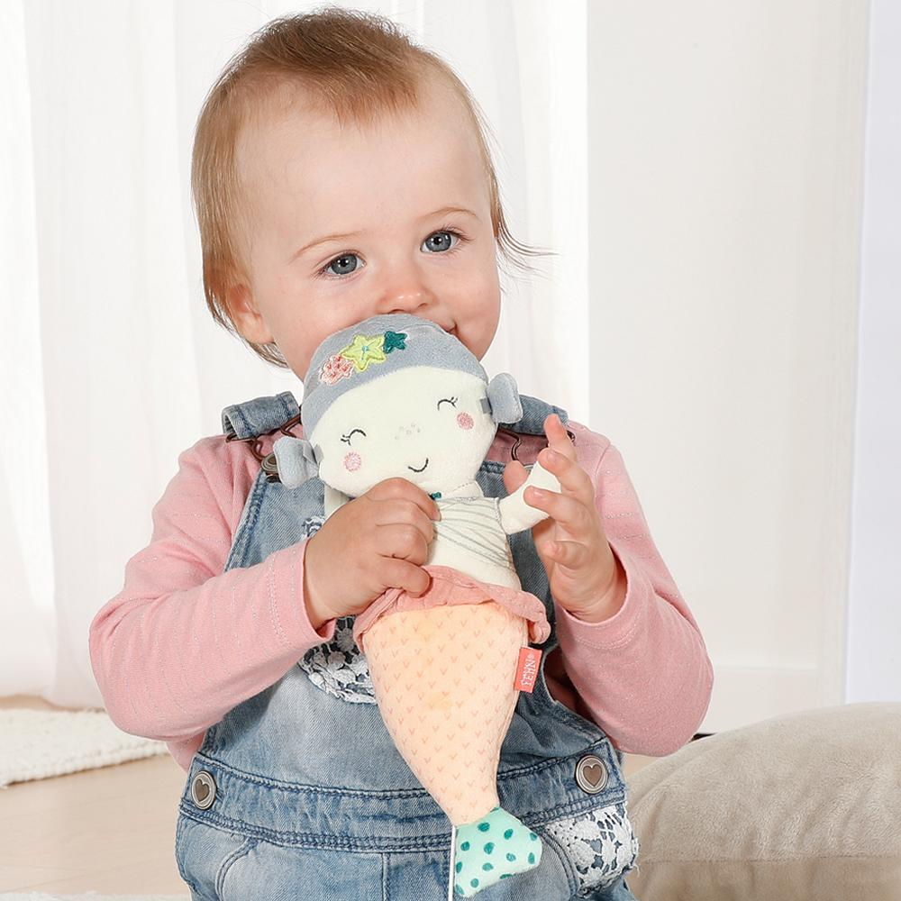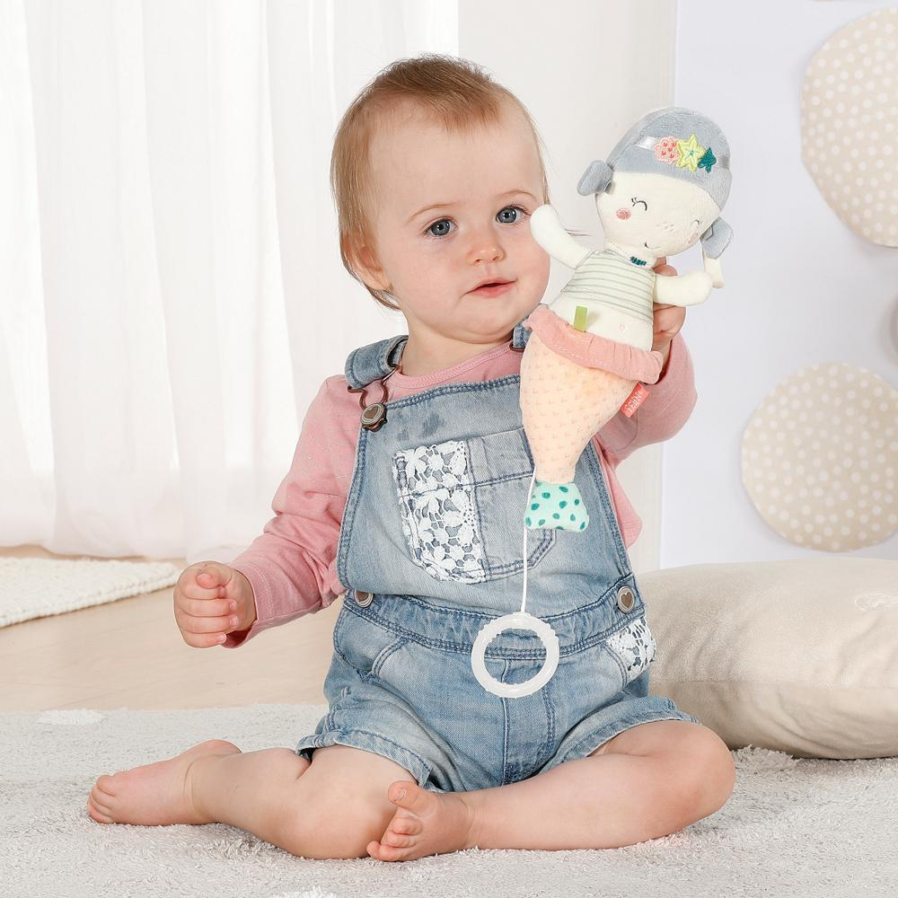 sunetele, materialul placut la atingere din care este confectionata si culorile pastelate sunt ideale pentru dezvoltarea multisenzoriala, dar si pentru calmarea micutului si pentru un somn linistit