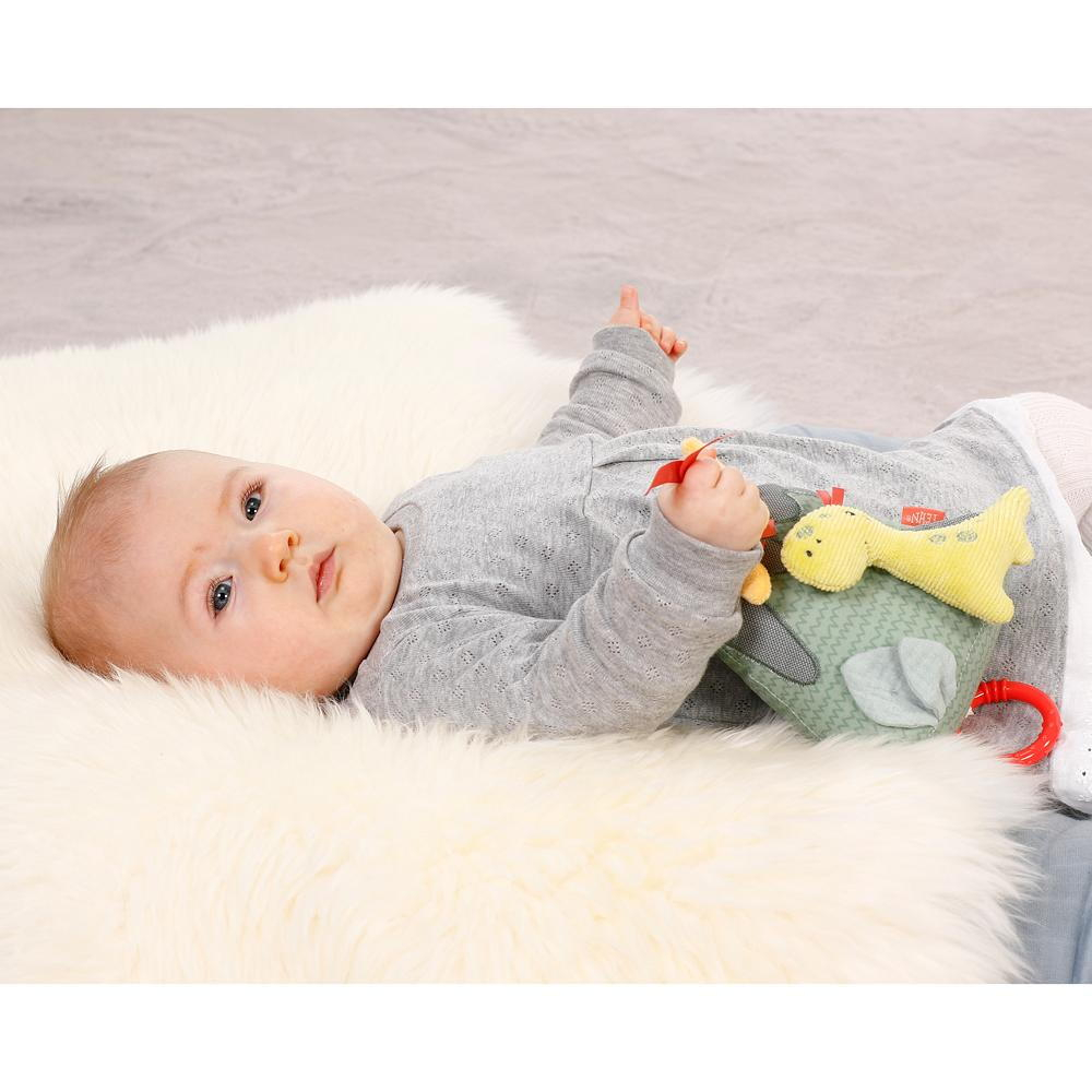 poate fi agatata fie de patutul copilului, de scaunul auto sau de carucior