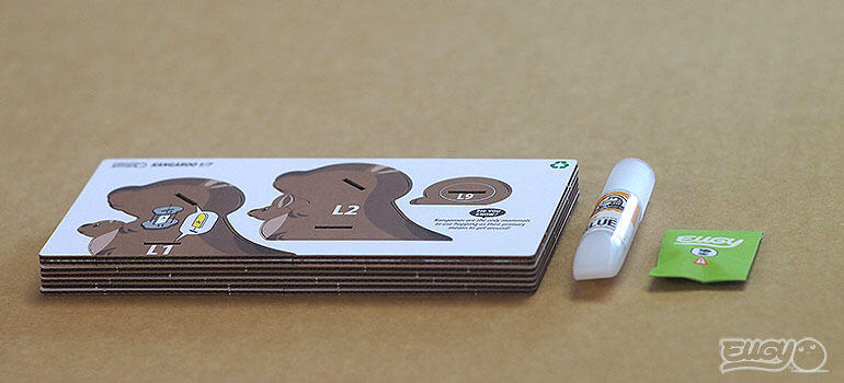 carduri care contin 26 de piese pentru construirea cangurului