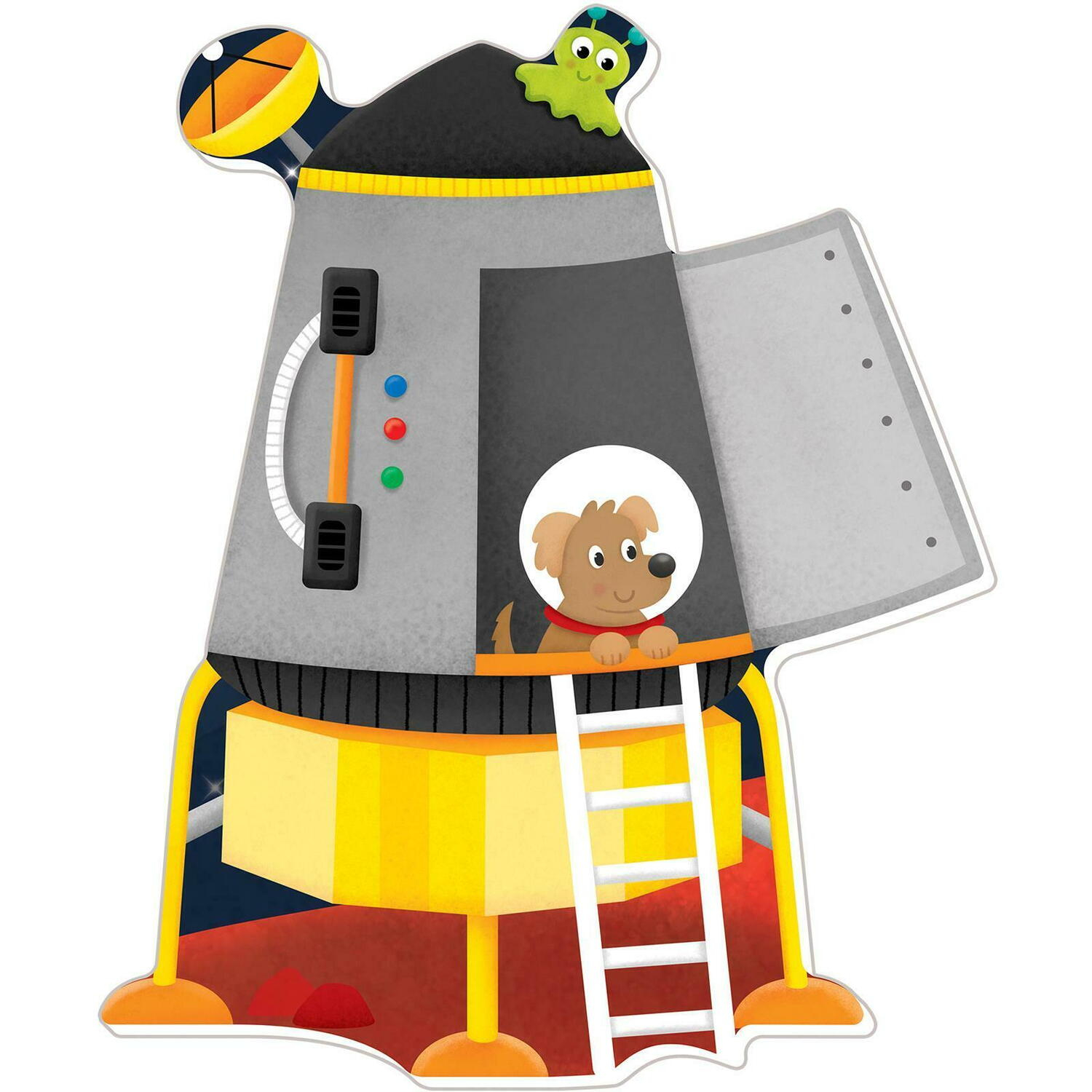puzzle-ul contine 30 de piese pentru podea, din care 8 piese sablon cum ar fi:racheta, nava spatiala, planeta etc