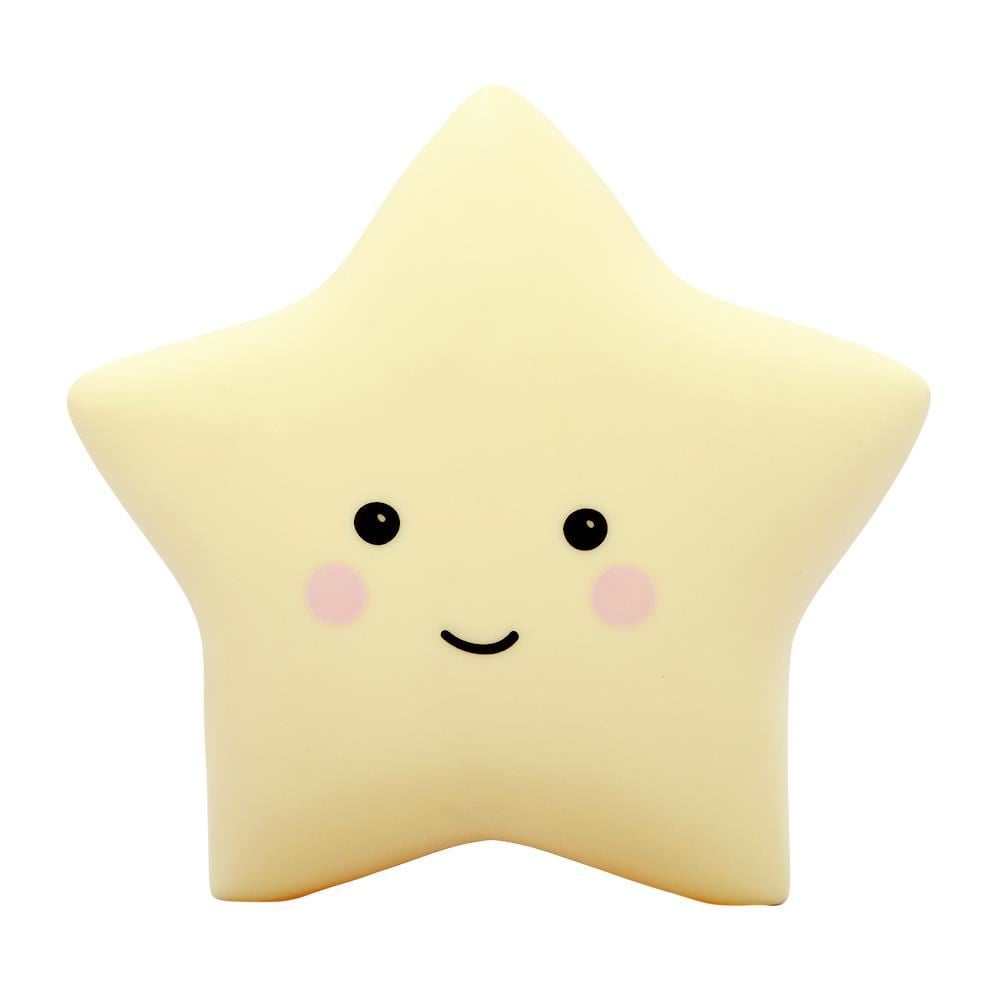 Somn netulburat si odihnitor al bebelusuluiLampa de veghe in forma de steluta zambitoare galbena pentru copii Lumilu Sweet Dreams Star este un accesoriu decorativ dragut in camera copiilor, care ii ajuta sa se simta in siguranta atunci cand raman singuri, pe timp de noapte. Copilul adoarme linistit datorita iluminarii slabe. Lampa are oprire automata, datorita functiei de cronometru. Dupa ritualurile de seara (citit, imbratisari, discutii), temporizatorul asigura stingerea automata a luminii dupa 15 minute. Utilizare sigura datorita luminilor LED si detaliilor inteligenteDeosebit de sigura pentru copii datorita compartimentului pentru baterii, cu insurubare. Astfel, copilul nu poate ajunge la baterie. In plus, designul fara margini si materialul nontoxic - fara BPA si ftalati - fac din aceasta lampa de veghe un companion sigur pentru micutii nostri. Utilizarea este cu atat mai sigura si datorita luminilor LED. Lampa de veghe ofera siguranta prin utilizarea tehnologiei moderne LED. Datorita degajarii scazute de caldura, nu exista riscul de aprindere nici macar in cazul utilizarii pe termen lung. In acelasi timp, aceste lumini creeaza o atmosfera placuta, linistitoare si calda.Specificatiile produsuluiLampa de veghe pentru noptiera, cu lumina LEDForma de stea zambitoareDimensiuni: aproximativ 13,8 x 6,5 x 13 cmMaterial: plasticTemporizator stingere automata cronometrata dupa 15 de minute, pentru economie de energie si durata prelungita de viataFara risc de incendiu, chiar si in cazul utilizarii pe termen lungDeosebit de sigura pentru copii datorita compartimentului pentru baterii cu insurubareMateriale netoxice, fara poluanti - fara BPA si ftalatiFunctioneaza cu 3 baterii LR44 (nu sunt incluse)Durata de viata a lampilor LED: aproximativ 50000 oreCuloare lumina LED: alb
