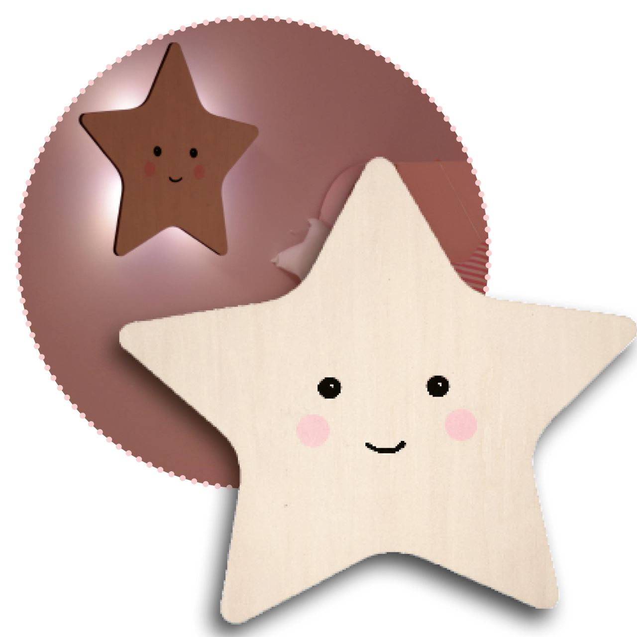 Somn netulburat si odihnitor al bebelusuluiDesignul inspirat de motive ceresti si materialului lor natural fac din aplicele Silhouette Light un accesoriu decorativ dragut in camera copiilor si ii ajuta sa se simta in siguranta atunci cand raman singuri, pe timp de noapte. Copilul adoarme linistit datorita iluminarii slabe, indirecte.Cu lumina sa calda, indirecta, lampa de perete in forma de steluta scufunda camera copiilor intr-o atmosfera care da o stare de bine si care favorizeaza somnul. Forma pe care o are aceasta lampa de veghe pentru copii creeaza o mica insula de lumina pentru cei mici pentru a-i ajuta sa-si gaseasca drumul in intuneric cand merg prin camera, de exemplu, la baie.Functie tactila de aprindere / stingere este usor de folosit chiar si pentru cei mici. Pur si simplu selecteaza setarea dorita atingand partea frontala de mai multe ori, pana la modul dorit. Functia tactila permite parintilor sa stinga lumina fara zgomotul intrerupatorului clasic, dupa ce copilul a adormit.Lampa de veghe Lumilu are doua niveluri de luminozitate. Nivelul mai puternic poate anunta ora de culcare si ofera suficienta luminozitate pentru ritualurile de somn de seara (citit, imbratisari, discutii). Nivelul mai slab invaluie camera copiilor intr-o atmosfera de somn linistitoare, de ajutor pentru a elimina frica micutului de intuneric, in timpul somnului. Datorita functiei de cronometru, este asigurata stingerea automata a luminii dupa 60 de minute. Copilul va adormi linistit, simtindu-se in siguranta, iar lampa de veghe pentru camera copilului va fi folosita timp indelungat, econimisind energia bateriei lampii de veghe. Utilizare sigura datorita luminilor LED si a detaliilor inteligenteDatorita degajarii foarte mici de caldura a acestei lumini, nu exista riscul de incendiu nici macar in cazul utilizarii pe termen lung.Materialul nontoxic, fara BPA si ftalati, impreuna cu designul rotunjit, fara margini periculoase, si luminile LED, fac aceasta lampa de veghe un accesoriu sigur pentru micutii nostri. Specificatiile produsuluiLampa de veghe cu sistem de prindere pe perete Lumină cu LED indirectaForma de steaMateriale naturale (lemn), fara poluanti - fara BPA si fara ftalatiDimensiuni: aprox. 34,2 x 3,5 x 22,8 cmAprindere / stingere fara zgomot, prin simpla atingere a partii frontaleLuminozitate reglabila in 2 trepteTemporizator stingere automata cronometrata dupa 60 de minute, pentru economie de energie si durata prelungita de viataDeosebit de sigura pentru copii datorita compartimentului pentru baterii, cu insurubareFara risc de incendiu, chiar si in cazul utilizarii pe termen lungFunctioneaza cu 3 baterii AA (nu sunt incluse)Durata de viata a lampilor LED: aproximativ 50000 oreCuloare lumina LED: alb caldClasa de protectie: IP20 (pentru utilizare doar la interior)