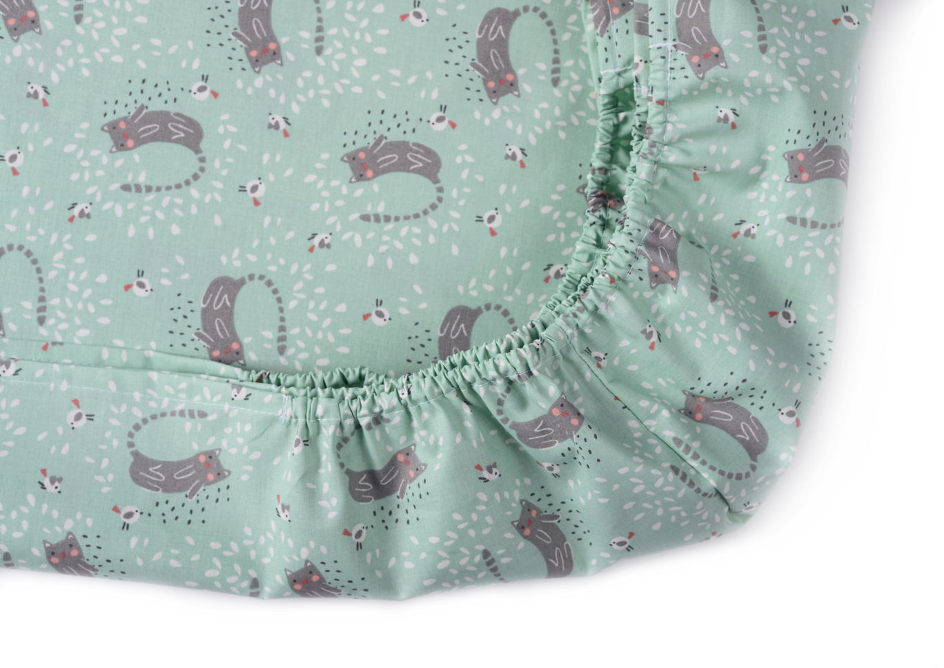 Cearceafurile Love My Cats sunt in culori asortate, prevazute cu elastic in colturi, pentru a ajuta la prinderea rapida a cearceafului pe patut si sustinerea intinsa pentru a nu crea cute sub bebelus.Cearceafurile sunt fabricate dintr-o panza rezistenta la spalat, iar culorile se pastreaza in timp.