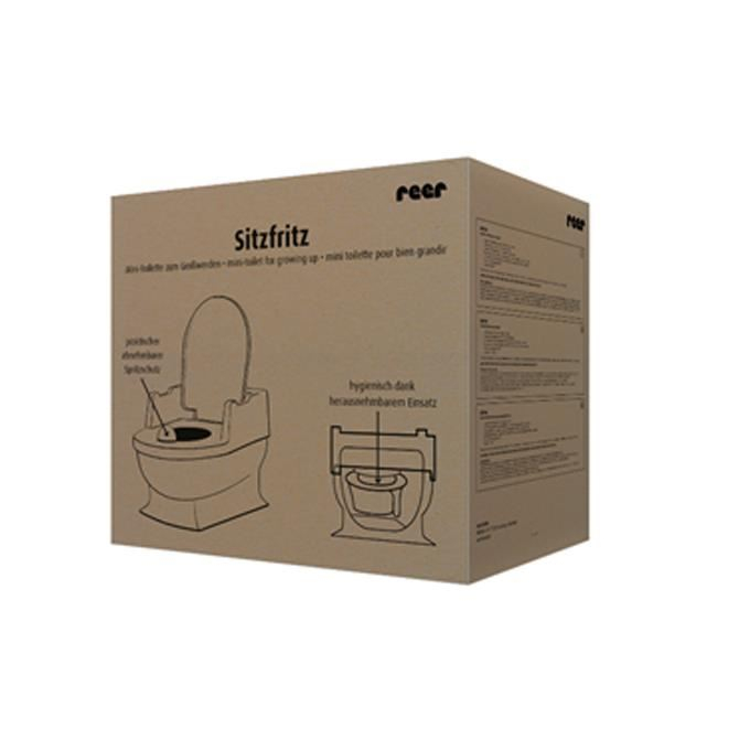 Toti copiii ajung la punctul in care trebuie sa treaca de la scutece la folosirea toaletei. Aceasta este o etapa de dezvoltare importanta si de durata, care este diferita pentru fiecare copil. Cu un design ergonomic si sigur, igienica si simplu de curatat datorita olitei detasabile, minitoaleta Sitzfritz de la Reer este foarte confortabil de folosit pentru copii, incepand cu varsta de 18 luni. Dimensiunile minitoaletei au fost perfect adaptate la inaltimea unui copil mic. Manerele de sprijin robuste ofera siguranta suplimentara garantata chiar si pentru cel mai mic copil care o folosește. Suprafața de contact foarte mare asigura ca minitoaleta este intotdeauna stabila, fara sa se incline sau sa se rastoarne. Toaleta pentru copii are o olita interioara care poate fi scoasa prin partea din spate. Acest lucru permite golirea igienica. Manerele scaunului si baza de sustinere nu intra in contact cu continutul olitei. Etapa in care majoritatea copiilor sunt pregatiti pentru olita este si etapa in care dorinta de a copia este cea mai pronuntata. Copiilor le place sa-si imite parintii si tocmai acest comportament ii poate ajuta pe copii sa spuna cand au nevoie la baie si sa invete sa foloseasca singuri toaleta. Minitoaleta lor este perfecta pentru a-i face sa simta ca pot merge la baie precum parintii lor. Specificatiile produsului- replica fidela 1:1 a unei „toalete pentru adulti”- sustine renuntarea copilului la scutec- face antrenamentul mersului la toaleta distractiv- design ergonomic – inaltime perfect adaptata si stabilitate in pozitia asezat- usor de curatat – olita detasabila care iese cu usurinta la rabatarea in sus a sezutului- material: polipropilena (PP)- culoare: alb