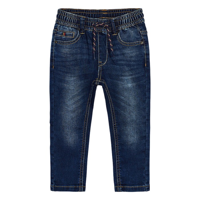Pantaloni lungi jogger - denimPantaloni tip jogger sunt largi in partea superioara si mai stramti pe glezna.Sunt perfecti pentru un look sport, care reflecta influenta sport streetwear. Material moale din bumbac elastic.Talia este elastica prin cordon ajustabil. Buzunarele sunt functionale pe partea frontala. Acest articol prezinta o nuanta speciala, care face ca finisajul sa nu fie uniform sau culoarea poate varia in functie de spalarile efectuate.Din motive de siguranta, marimile mici (2 - 5 ani), nu vor avea fermoar la slit, ci un slit fals.Material: 83% bumbac / 15% poliester / 2% elastan Culoare: albastru inchis