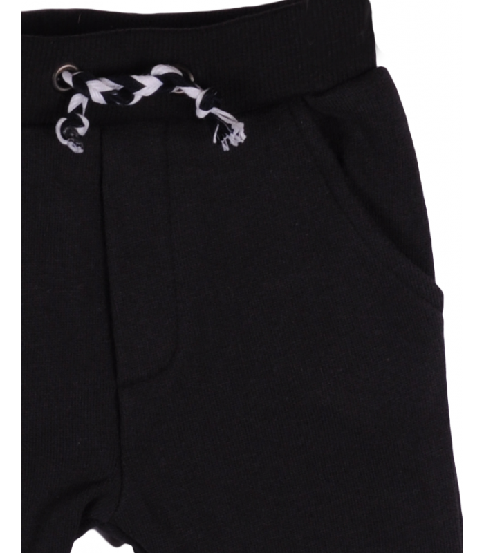 Au buzunare laterale, iar in talie au elastic si snur alb/negru.