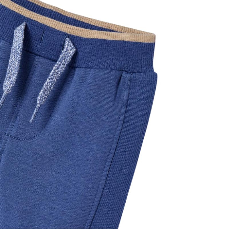 Pantaloni trening pentru bebe ECOFRIENDSPantaloni din linia sporty pentru bebelusi, foarte flexibili, speciali pentru exercitiile fizice. Talia este elastica si are cordon ajustabil snur.Tiv cu elastic bleu cu bej in talie si bleu la glezne pentru o mai buna ajustare.Materialul este moale din bumbac elastic.