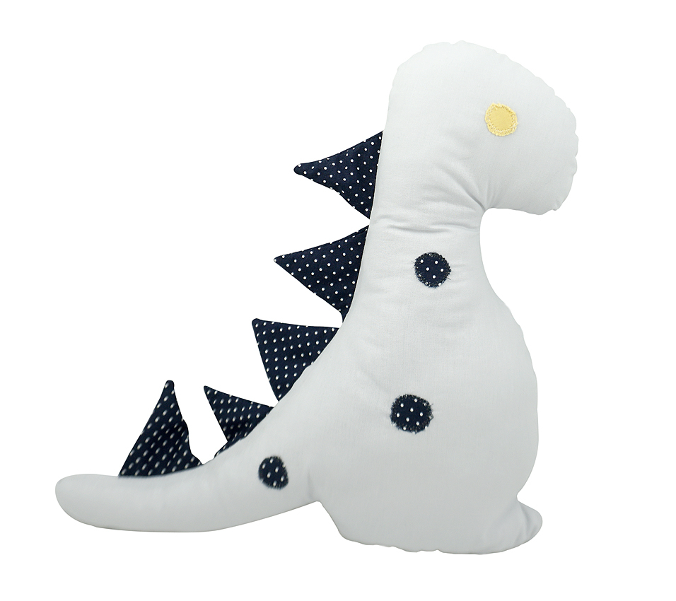 Pernuta mica Dinozaur cu tepiPernuta dinozaur cu tepi este o pernuta in forma de dinozaur ce poate fi utilizata atat ca perna dar si protectie pentru patut sau jucarie. Tepii sunt cusuti si sunt din panza de bumbac. Deci nu inteapa! Este de dimnsiuni mici si poate deveni usor chiar jucaria preferata a micutului.Culoare: gri deschis Design: buline si tepi cusutiDimensiuni: 30 x 22 cm Material:Exterior: bumbac 100% Interior: umplutura de tip superball Intretinere: Spalare: automata / manuala Temperatura: max. 30°C Interzis: albirea si curatarea chimica Fabricat in Romania
