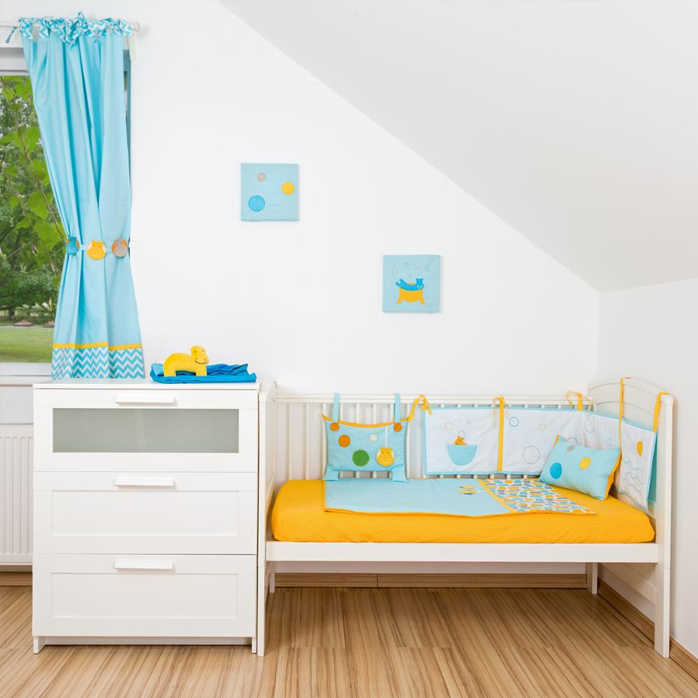 Culoare: galben / bleuImprimeu: picatele / hipopotamDimensiuni: 70 x 100 cm