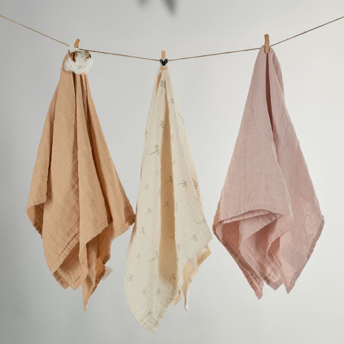 ONINO - Muselina multifunctionala din bumbac 100% organic, HUG.me, Pure Bloom, x3 bucati, 60 x 60 cm, certificata GOTS
