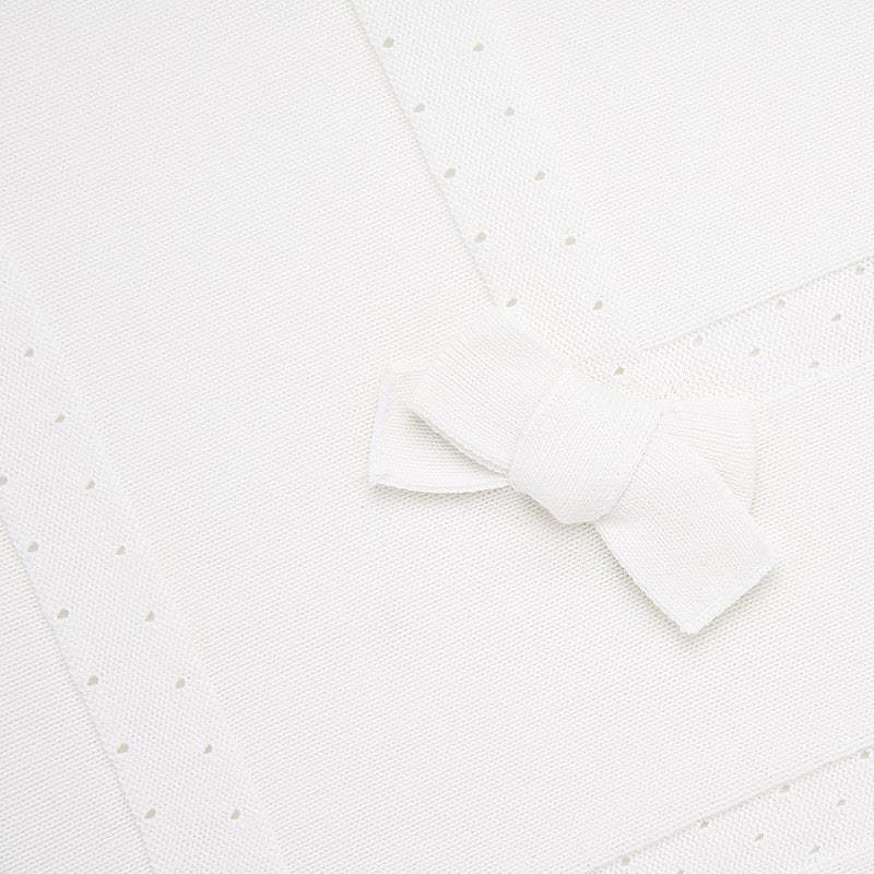 Paturica bebe - AlbPaturica pentru nou-nascut, moale la atingere si usoara, ce ofera confort bebelusului in momentele de odihna. Material tricotat fin, cu decoratie o fundita.