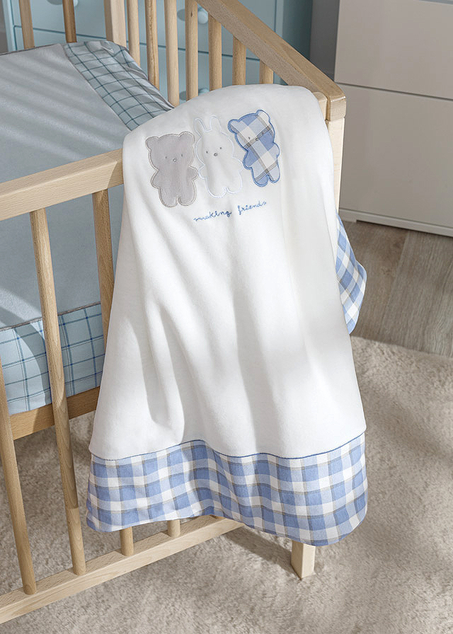 Elemente decorative: broderie ursuletiDesing: ursuleti si iepurasiCaracteristici: - Paturica poate fi utilizata ca protectie sau acoperirea bebelusului atunci cand doarme, la plimbare.