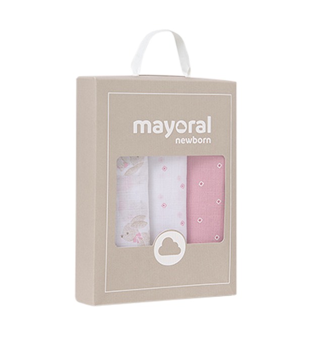 Set cadou - 3 museline iepurasi - roz - MayoralSetul vine ambalat intr-o cutie eleganta din linia Newborn, ideala pentru cadou.Articolele se prezinta intr-o cutie din linia Newborn, ideala pentru cadou.