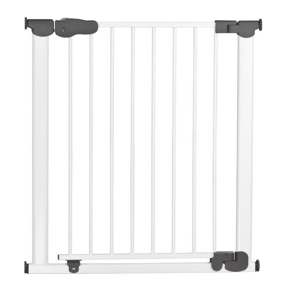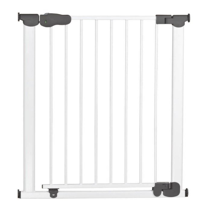 Poarta de siguranta I-GATE Caracteristici:- Pentru a securiza usi si pasaje de trecere fara trepte- Pentru a preveni caderea copiilor pe scari, poarta poate fi monstata si pe ultima treapta de sus a scarii- Porțile tip I-Gate pot fi instalate ușor, fără găurire sau înșurubare, prin simpla introducere a unui cadru  de presiune în tocul ușii. O condiție necesară este o suprafață de montare adecvată, netedă, care este robustă și nu prea fină sau prea aspră.- Montare prin presiune, cu 4 suruburi de presare si indicator de verificare a instalarii corecte- Dimensiune ajustabila, potrivita pentru spatii de trecere intre 77,5 – 83,5 cm- Posibilitate de extindere pana la 125,5 cm, folosind maximum 6 extensii- Sistem de inchidere automatic: poarta se inchide singura imediat in urma persoanei care trece si se va incuia automat- Indicatorul colorat pentru inchidere verifica daca poarta este corect inchisa dupa trecere.- Auto-Close: incuietoare cu dublu sistem de siguranta ce previne deschiderea portii de catre copii. Usor si la indemana de deschis de catre adulti, cu o singura mana: doar apasati butonul de siguranta si trageti inapoi manerul pentru a debloca usa.- Include banda luminoasa Night-Safe: lumineaza noaptea pragul de jos al portii, cu scopul de avertizare la pericolul de impiedicare- Spatiu generos de trecere, cu o latime de 60 cm- Inaltime 77 cm- Deschidere in ambele directii- Include opritor pentru limitarea deschiderii pe una din directii- Balamale cu protectie pentru degete- Material: metal (otel) si plastic (PA6, SEBS, POM)- Culori: metal - alb;  plastic – gri deschis- Potrivite pentru copiii cu varsta de pana la 2 ani- Destinate doar uzului casnic- Certificate conform ultimelor standarde de siguranta: SLG-GS EN 1930:2011