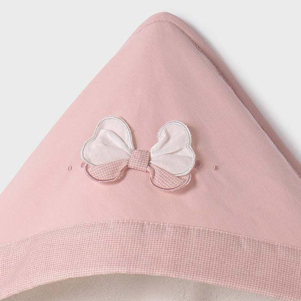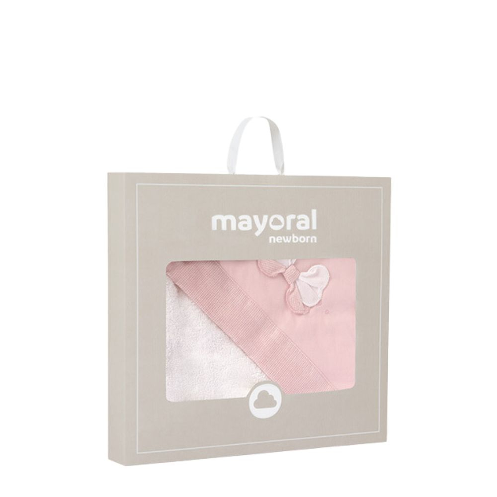 Prosop cu gluga - Fundita velur - Mayoral Prosopul vine ambalat intr-o cutie eleganta din linia Newborn, ideala pentru cadou.Prosop cu gluga cu care poti usca si infasura bebelusul dupa baie.Este un accesoriu esential pentru baita zilnica a bebelusului, la plaja sau la piscina.