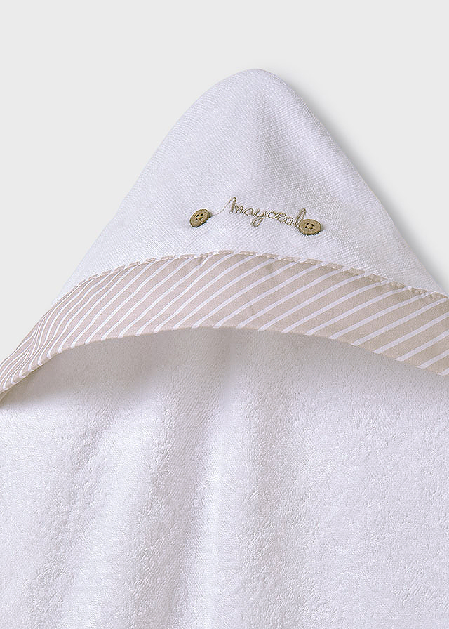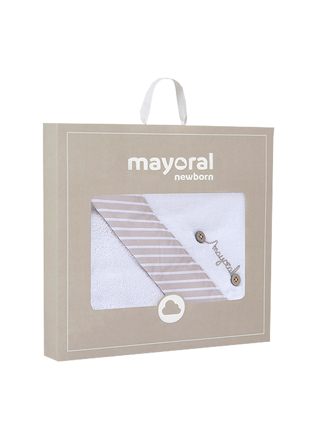 Material moale din bumbac elastic. Prosopul vine ambalat intr-o cutie eleganta din linia Newborn, ideala pentru cadou.