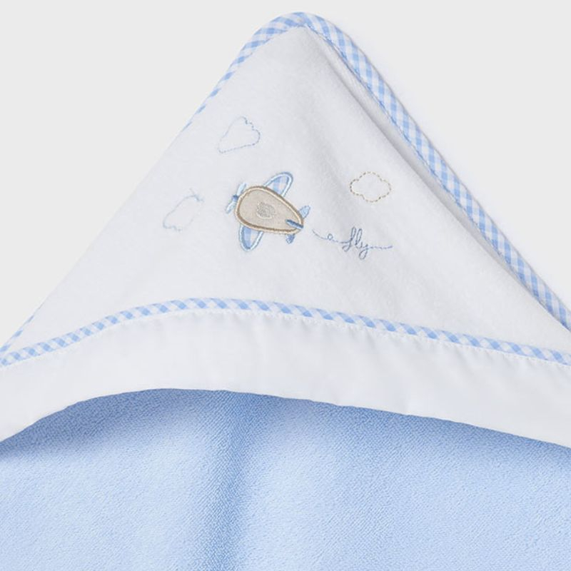 Prosop din bumbac sustenabil- Avion - bleu - Mayoral Prosop cu gluga cu care poti usca si infasura bebelusul dupa baie. Este un accesoriu esential pentru baita zilnica a bebelusului, la plaja sau la piscina.