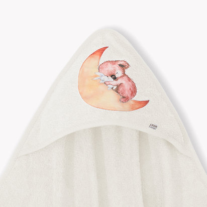 aplicatie urs coala dormind pe semilunaCertificat OEKO-TEX (Standard 100 Confidence in Textiles)Standardul OEKO-TEX® 100 este un sistem independent de testare si certificare pentru materii prime textile, produse intermediare si finite în toate etapele de productie.Culoare: albDesign gluga: junglaDensitate: 350 g/mp