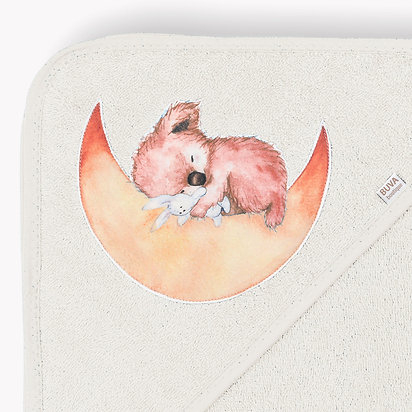 Prosop din frotir cu capison Blush Ecru - BuvaProsopul cu gluga Blush Ecru este luxos, foarte pufos si cu mare putere de absorbtie, excelent pentru pielea gingasa a bebelusului.