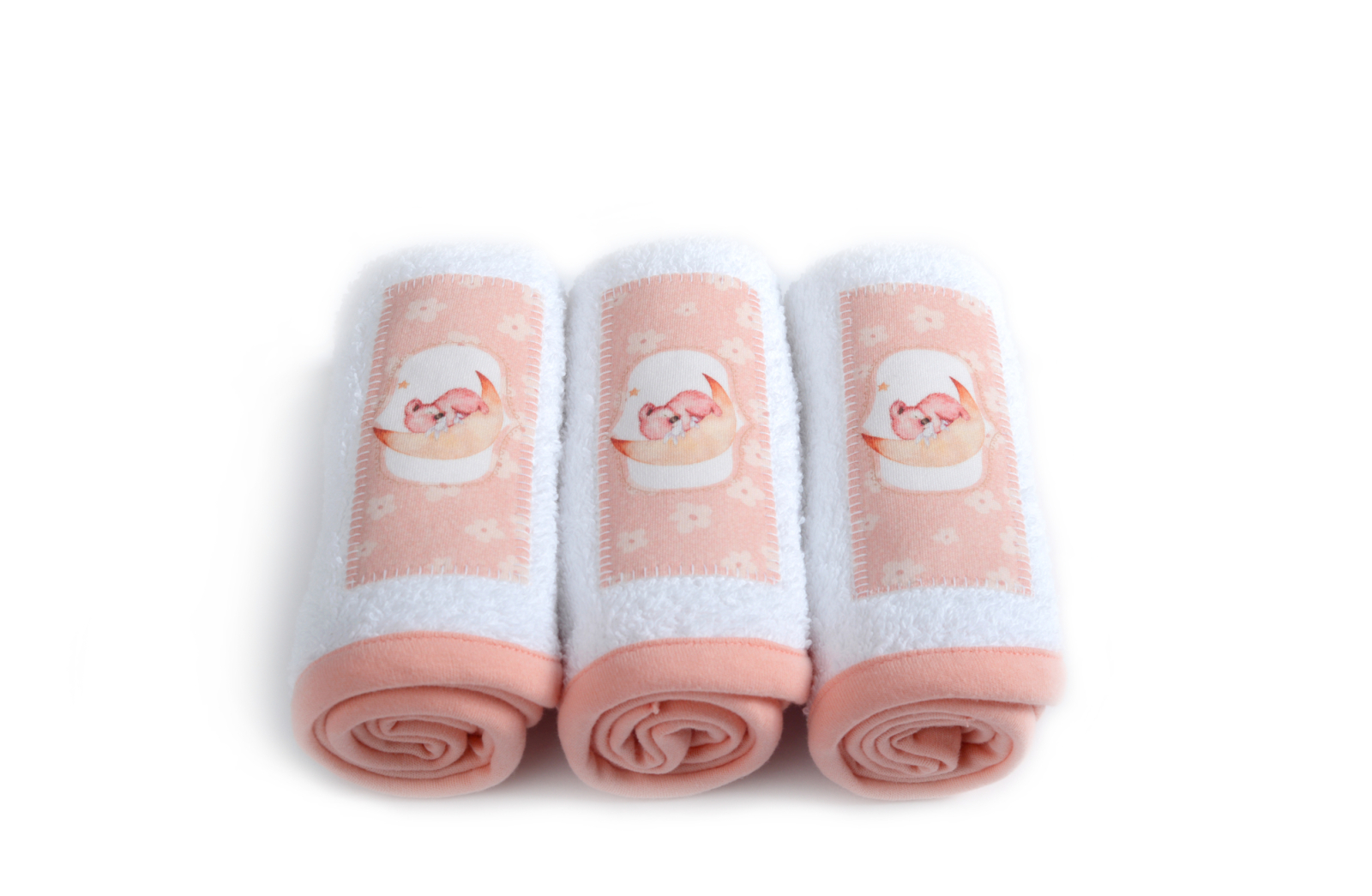 Prosoapele Moony Blush Koala pot fi folosite pentru sters pe maini si fata. Prosoapele sunt foarte pufoase si cu mare putere de absorbtie, excelente pentru pielea fina a copiilor. Fiecare prosop are cate o aplicatie decorativa.