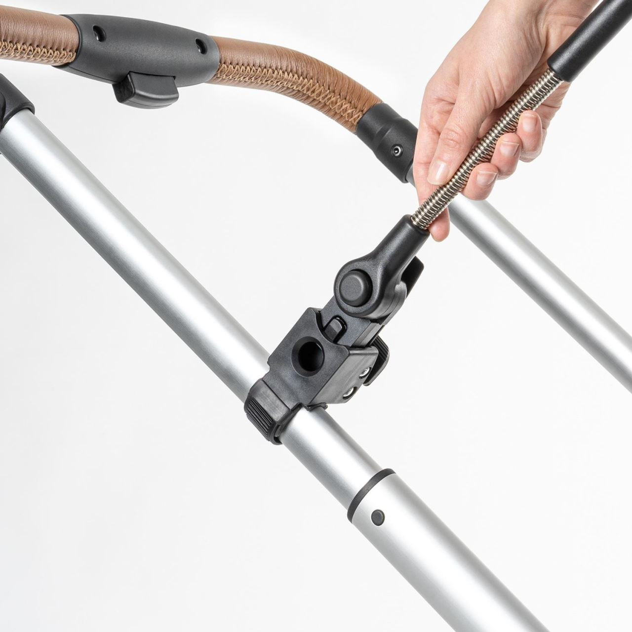 Protectie UV: materiale de inalta calitate si articulatii flexibileUmbreluta impotriva radiatiilor solare (diametru 80 cm, inaltime 68 cm) este confectionata din otel inoxidabil, poliester si plastic. Umbrela propriu-zisa este realizata 100% din poliester pongee, o fibra sintetica ferma, densa, care absoarbe pana la 98% din razele solare. Ofera pielii sensibile a bebelusilor cea mai mare protectie UV 50+. Umbrela de soare pentru bebelusi poate fi reglata usor si convenabil in functie de pozitia soarelui in raport cu caruciorul, datorita articulatiilor suportului si umbrelei.Prindere usoara si stabilitate pe carucior. Demontare la fel de usoaraSuportul universal se adapteaza individual la latimea cadrului fiecarui carucior. Poate fi montat in siguranta atat pe barele rotunde, cat si pe cele ovale. Poti atasa umbrela de soare la aproape orice model de carucior, unde iti doresti: pe glisor, pe bara de protectie sau direct pe cadrul caruciorului. Suportul cauciucat previne alunecarea umbrelei si ofera o prindere sigura chiar si in conditii de vant sau pe teren accidentat. In plus, nu zgarie cadrul caruciorului.Cand nu este folosita, umbrela poate fi scoasa din suport si depozitata cu o singura miscare a mainii deoarece suportul ramane pe carucior. Suportul permite utilizarea flexibila a umbrelei de soare pe orice carucior.Detalii produs:- ofera umbra si protejeaza impotriva arsurilor solare (UPF: 50+)- absoarbe pana la 98% din radiatiile solare- ajustare confortabila in functie de pozitia soarelui- asamblare rapida si usoara datorita suportului care ramane fixat pe carucior- dimensiuni aproximative: diametru 80 cm, inaltime 68 cm- material: otel inoxidabil, plastic, polyester